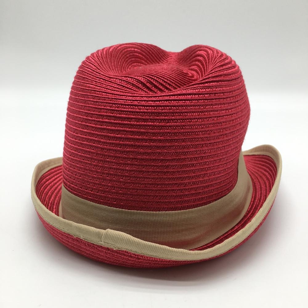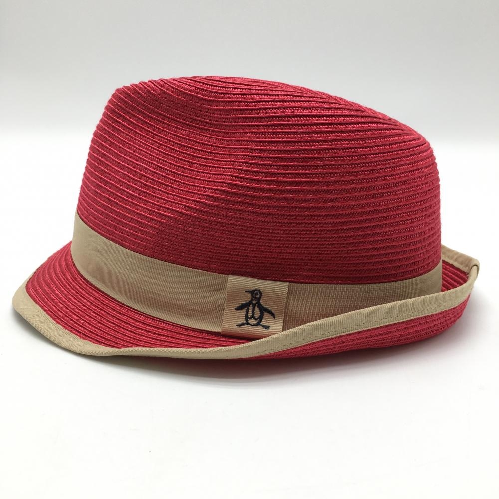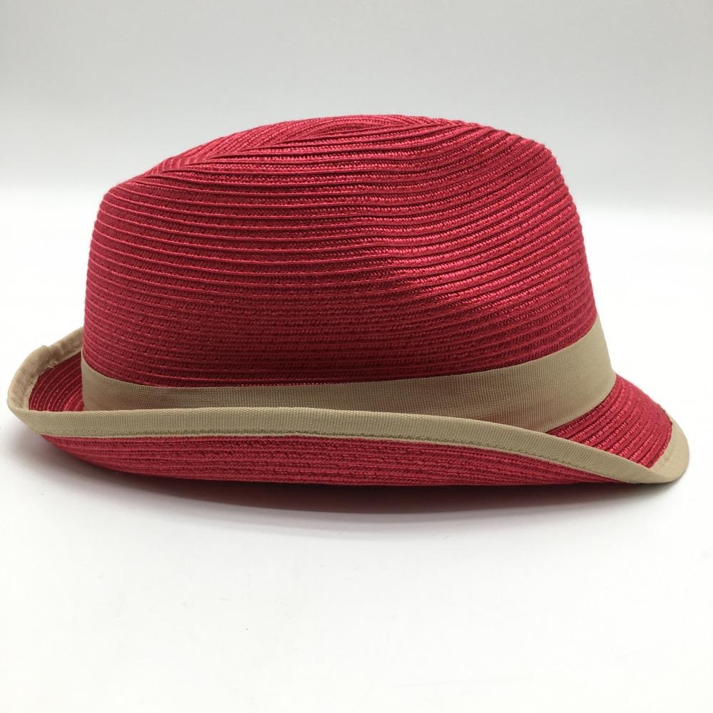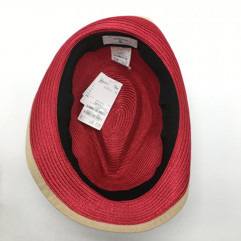 【新品】マンシングウェア 中折れハット レッド×ベージュ ロゴ刺しゅう F(55-57cm) ゴルフウェア Munsingwear