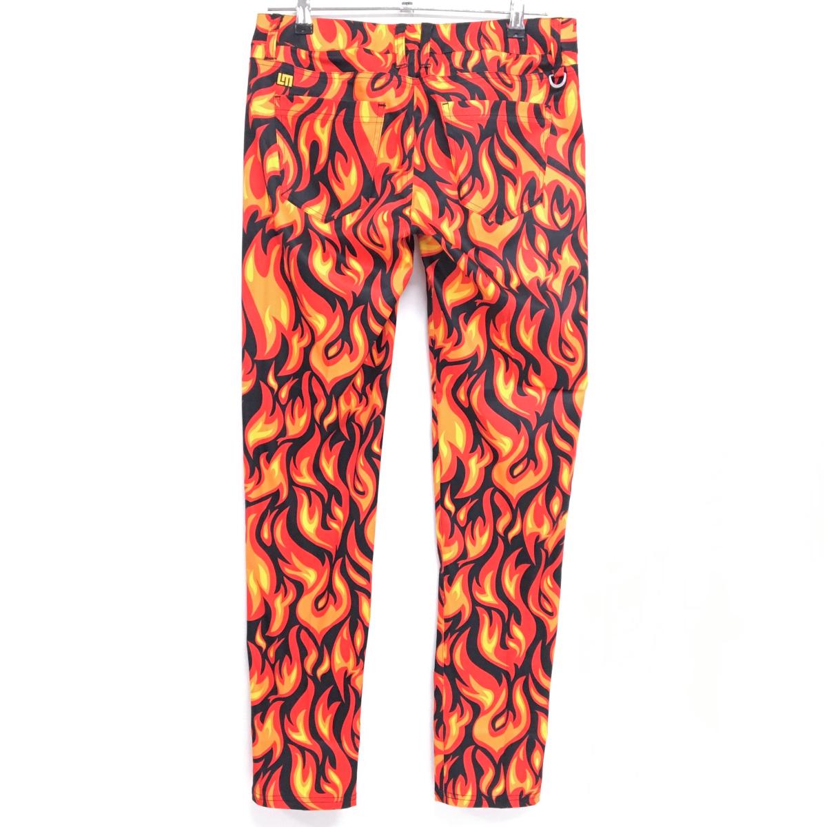 【新品】ラウドマウス パンツ 黒×レッド 炎柄 ストレッチ レディース LL ゴルフウェア LOUDMOUTH