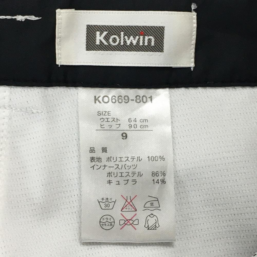 【美品】コルウィン スカート 白×黒 総柄 内側インナーパンツ レディース 9 ゴルフウェア Kolwin