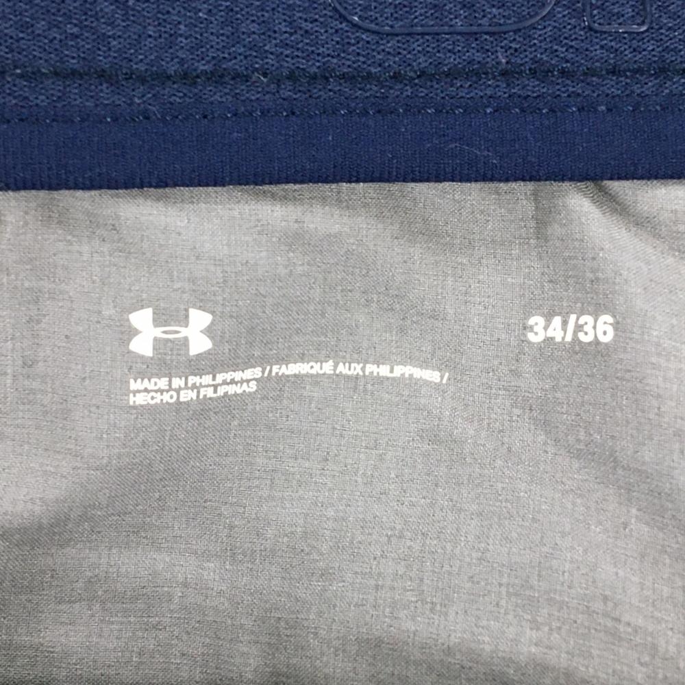 【美品】アンダーアーマー パンツ ネイビー シンプル バックロゴ ウエストゴム メンズ 34/36 ゴルフウェア UNDER ARMOUR