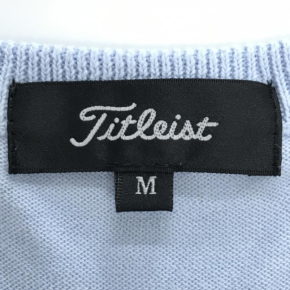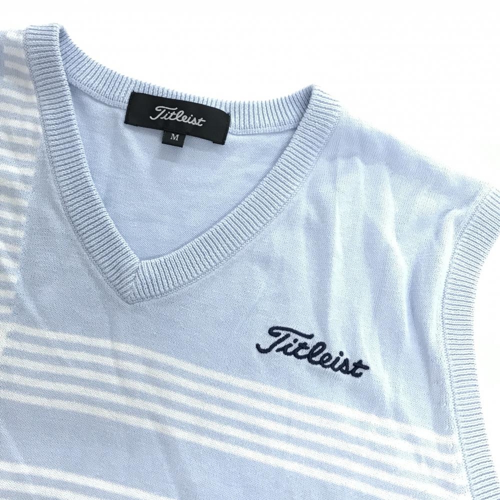【美品】タイトリスト ニットベスト ライトブルー×白 ボーダー ロゴ刺しゅう メンズ M ゴルフウェア TITLEIST