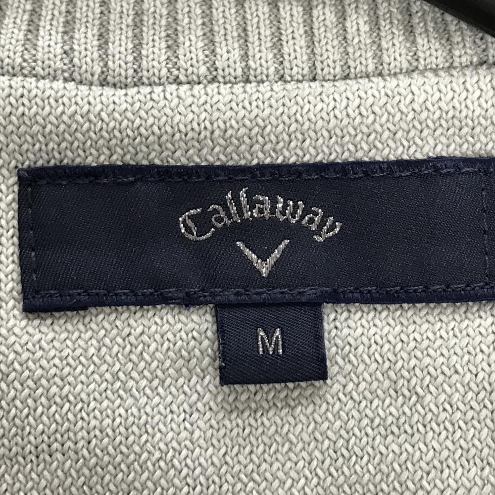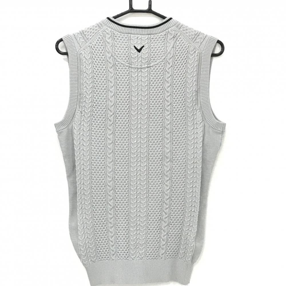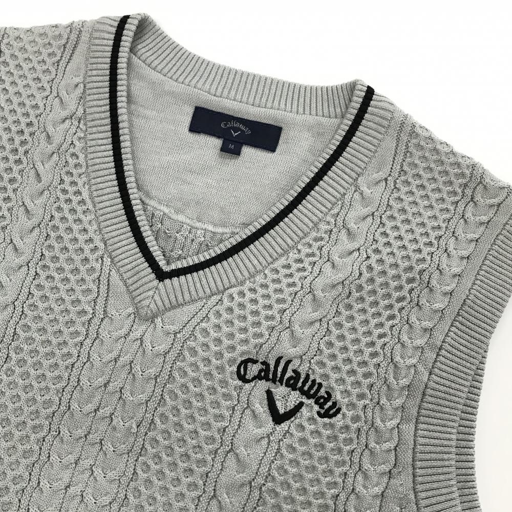 【超美品】キャロウェイ ニットベスト グレー×黒 ケーブル編み Vネック ロゴ刺しゅう ポリエステル100% メンズ M ゴルフウェア Callaway