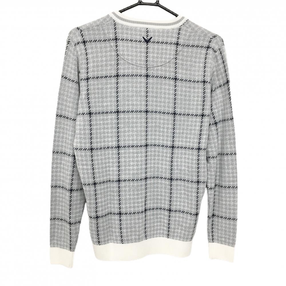 キャロウェイ セーター グレー×ネイビー 千鳥柄 格子 Vネック ニット メンズ M ゴルフウェア Callaway