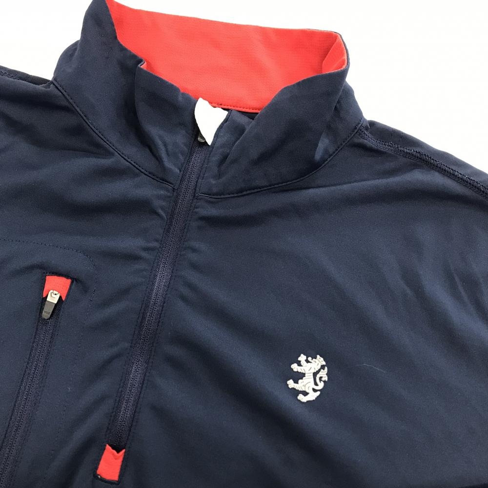【美品】アドミラル 長袖ハイネックシャツ ネイビー×レッド ハーフジップ ロゴシルバー メンズ L ゴルフウェア Admiral