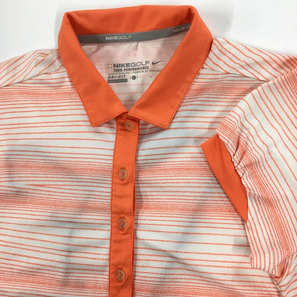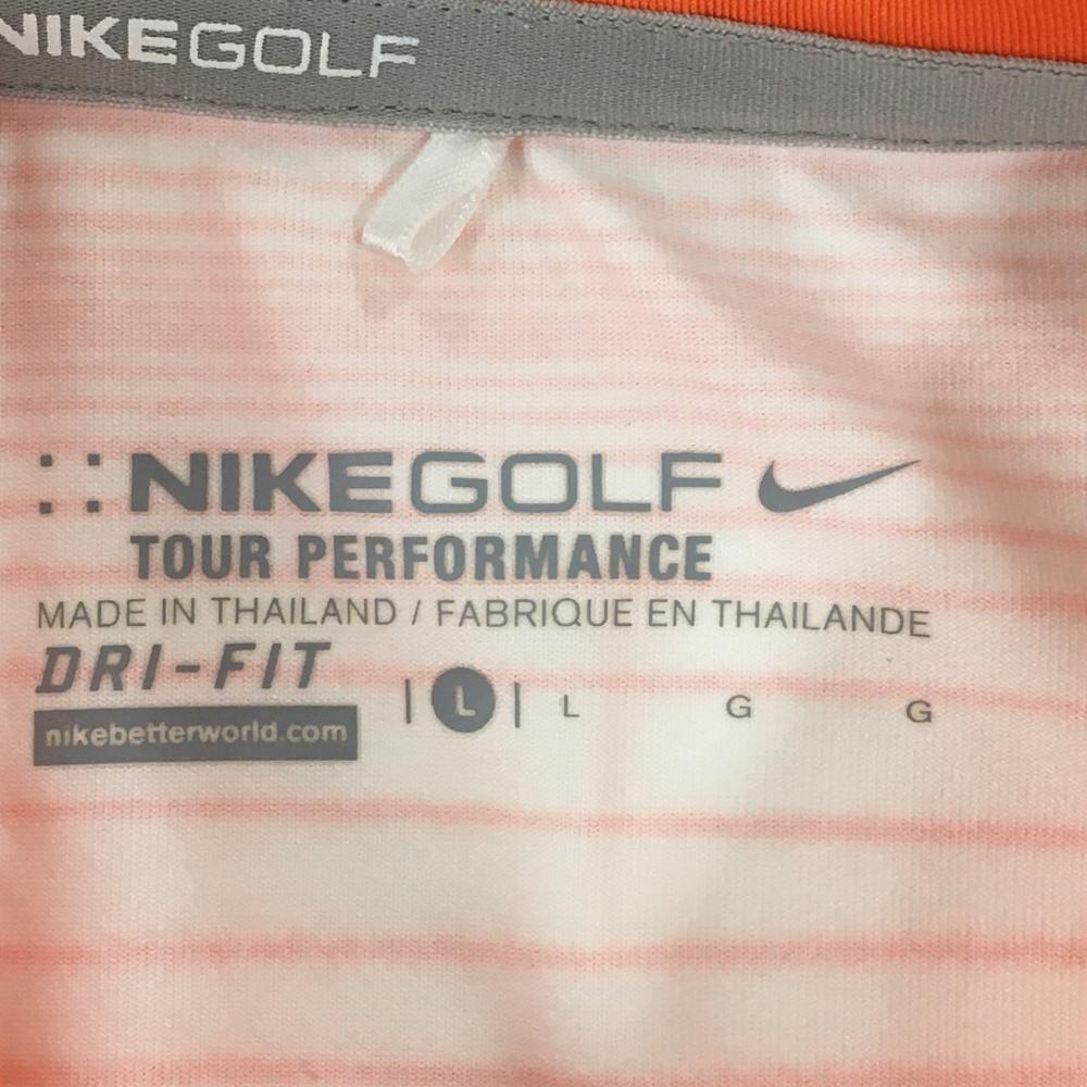 【超美品】ナイキゴルフ 半袖ポロシャツ 白×オレンジ ボーダー 裾ロゴ DRI-FIT レディース L ゴルフウェア NIKE