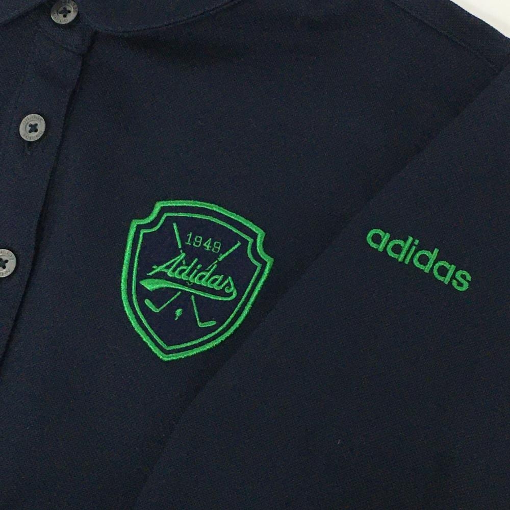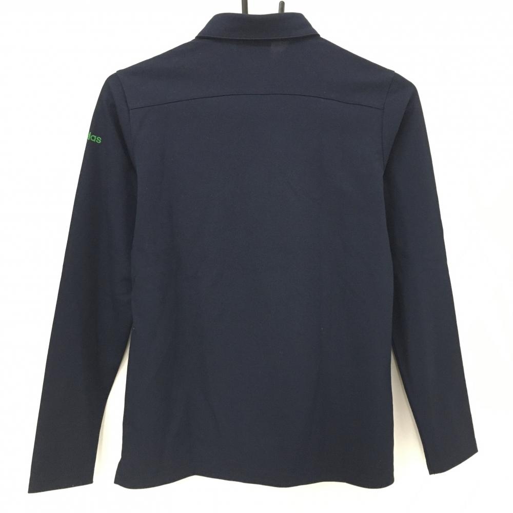 【美品】アディダス 長袖ポロシャツ ネイビー×グリーン 袖刺しゅう レディース M/M ゴルフウェア adidas