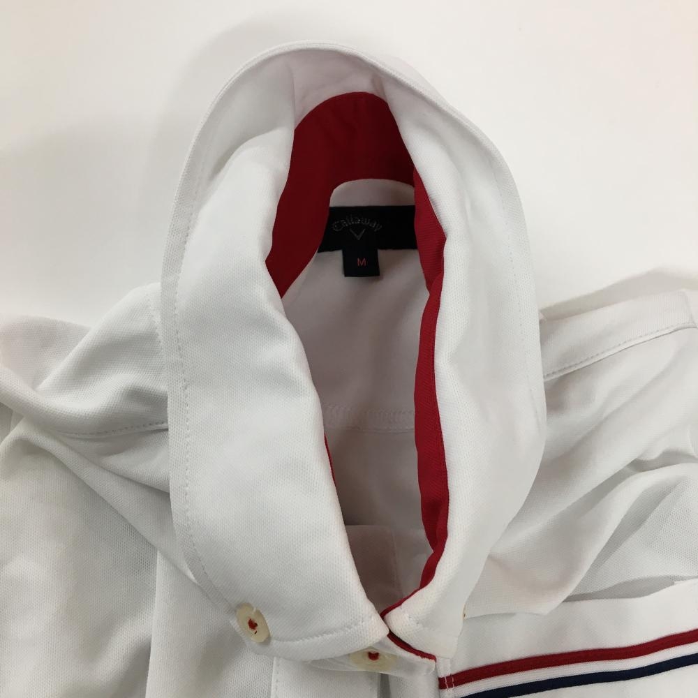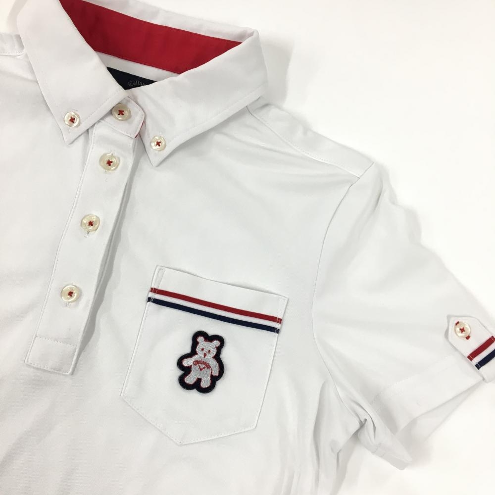 キャロウェイ 半袖ポロワンピース 白×ネイビー ベア ボタンダウン レディース M ゴルフウェア Callaway