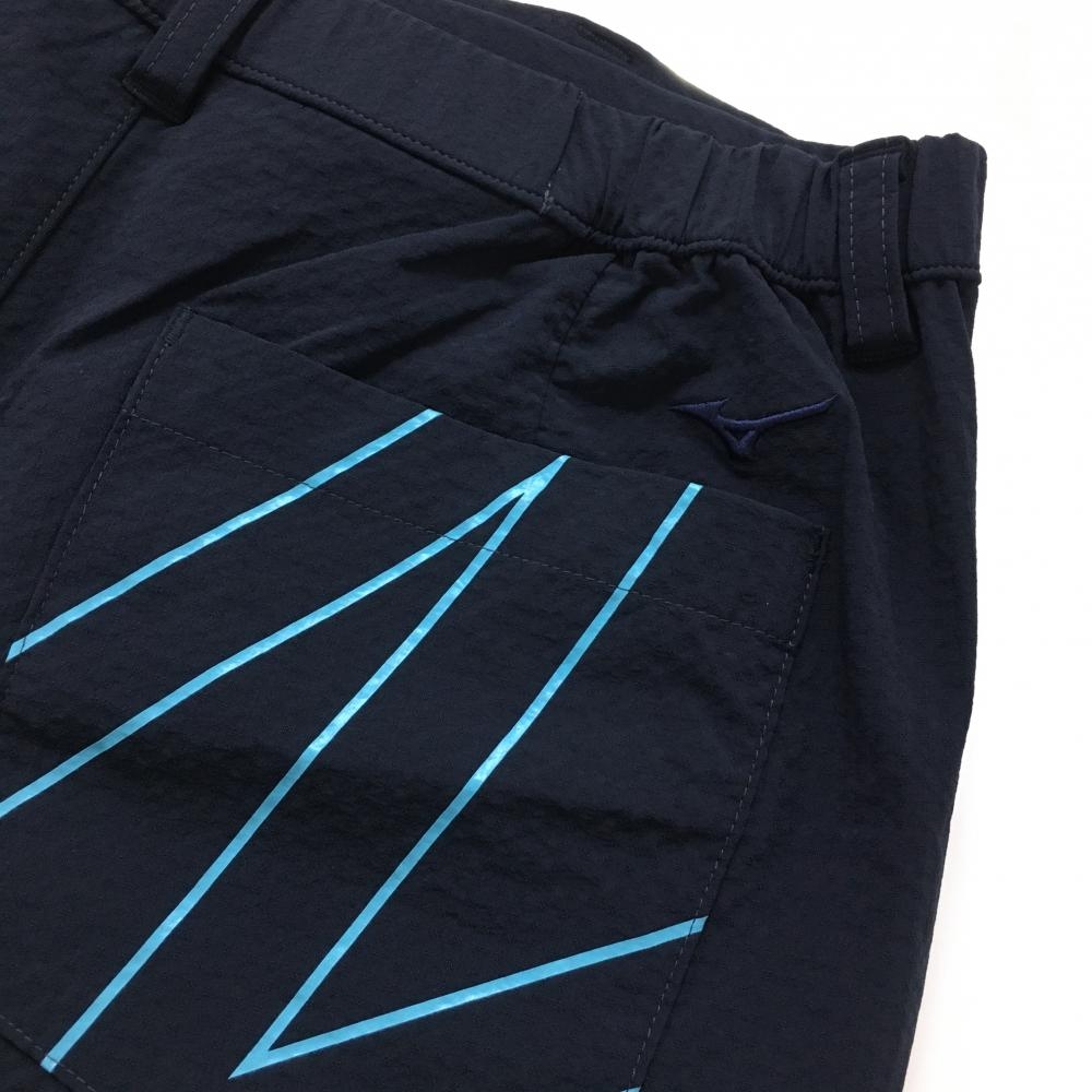 【超美品】ミズノゴルフ キュロットスカート ネイビー×白 サッカー生地 ウエストゴム ラップスカート風 レディース M ゴルフウェア MIZUNO