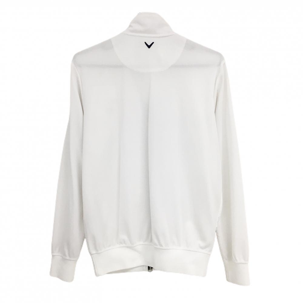【美品】キャロウェイ ジャケットブルゾン 白×ネイビー 身頃格子柄地模様 ロゴ刺しゅう ALOHA メンズ M ゴルフウェア Callaway