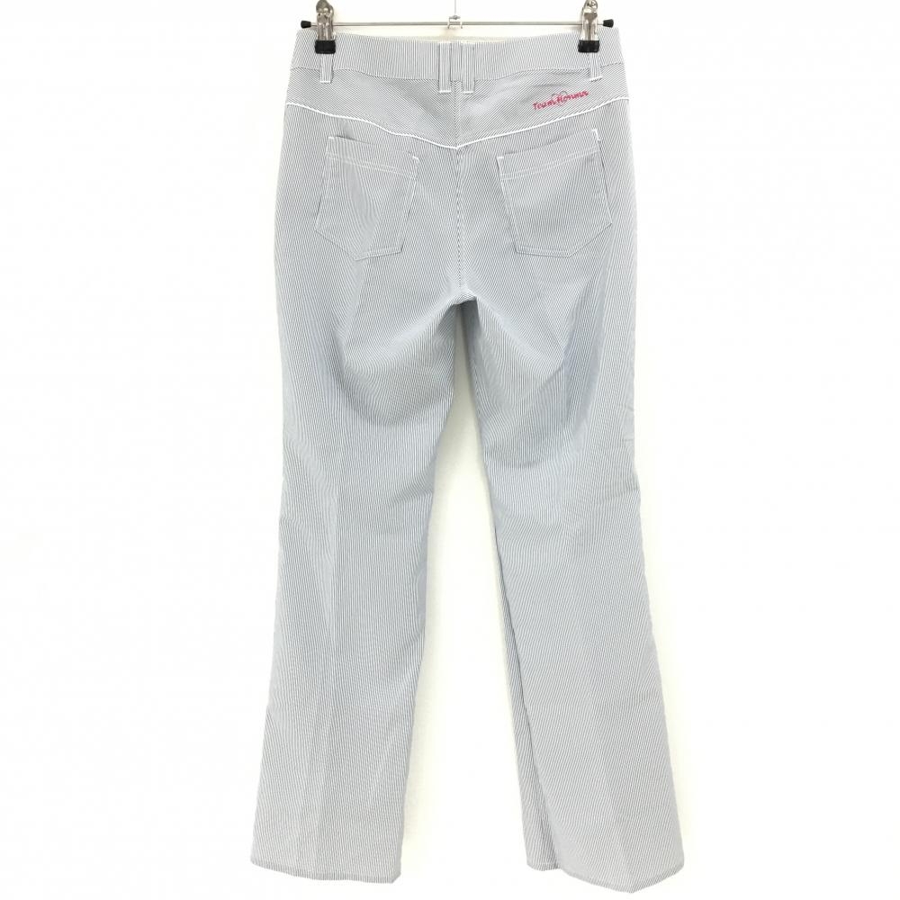 【超美品】ホンマ パンツ ネイビー×白 ストライプ 刺しゅうレッドピンク レディース M ゴルフウェア HONMA