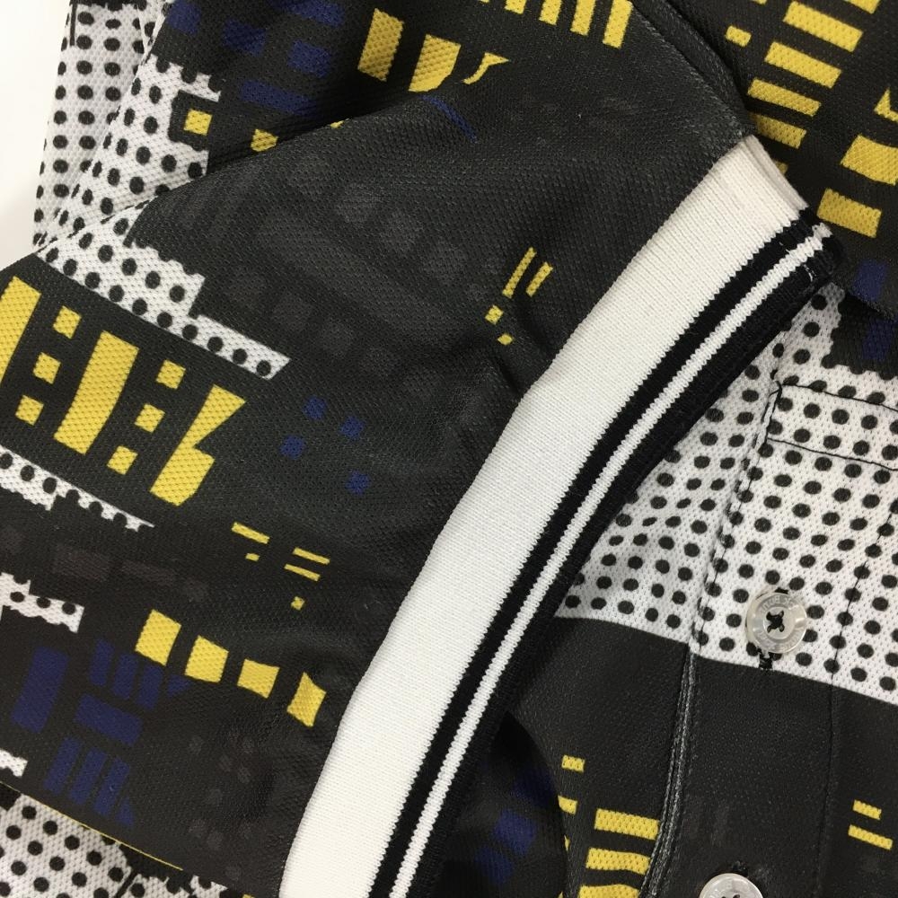 ジャックバニー 半袖ポロシャツ 白×黒 シティ柄 ドット シリコンワッペン メンズ 6(XL) ゴルフウェア Jack Bunny