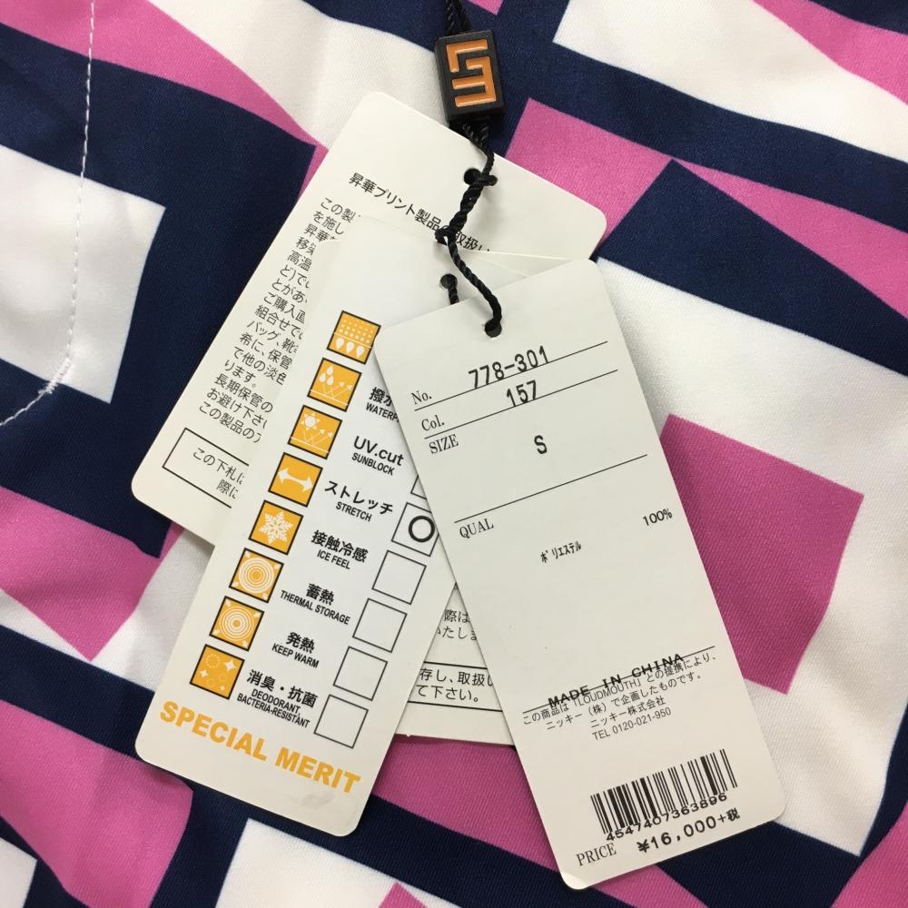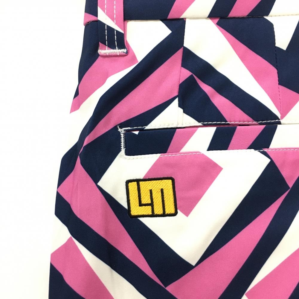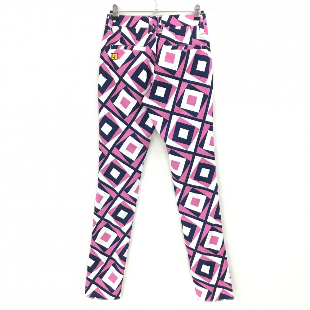 【新品】ラウドマウス パンツ ピンク×ネイビー×白 総柄 スクエア ストレッチ タンブラーネイビー メンズ S ゴルフウェア LOUDMOUTH