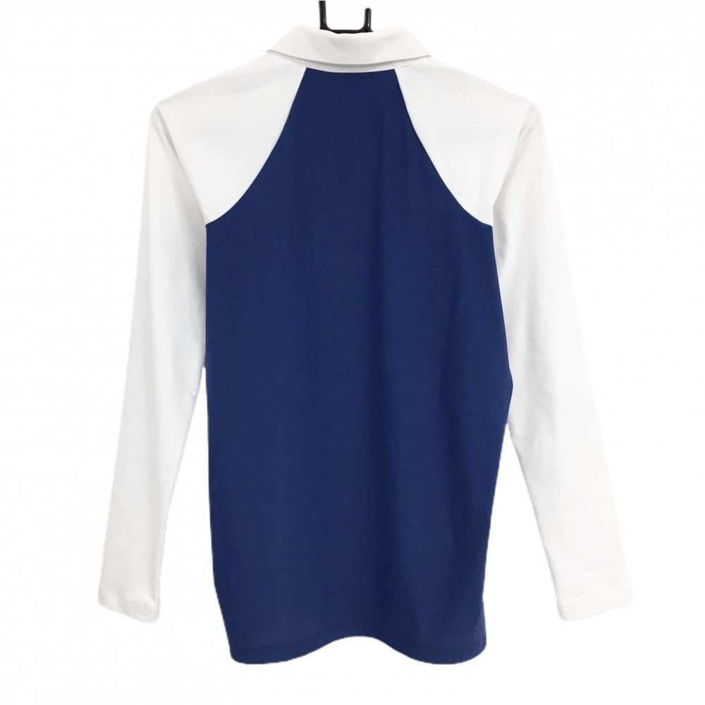 【超美品】デサントゴルフ 長袖ポロシャツ 白×ネイビー 肩ロゴ スナップボタン 中田英寿 レディース L ゴルフウェア DESCENTE
