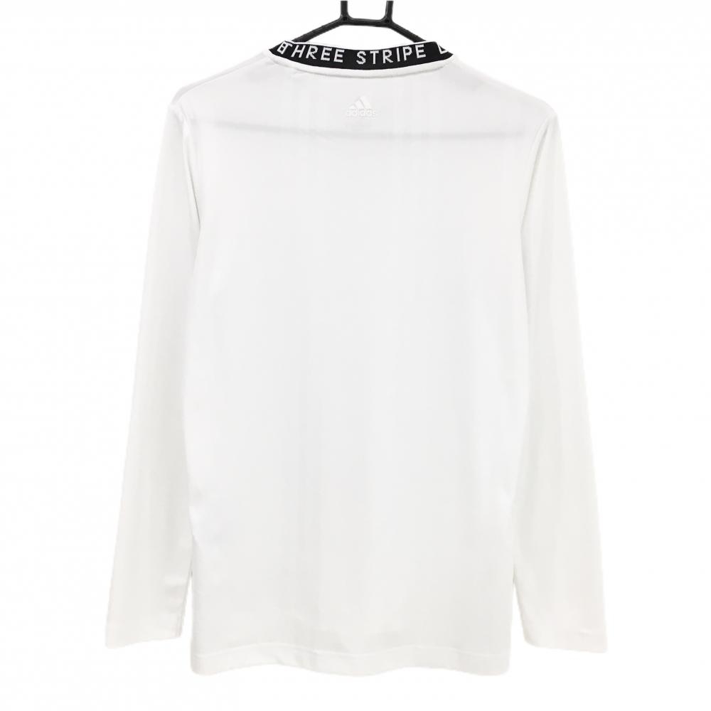 アディダス 長袖Tシャツ 白×黒 3ライン地模様 ネック英字 裾ロゴ レディース OT ゴルフウェア adidas