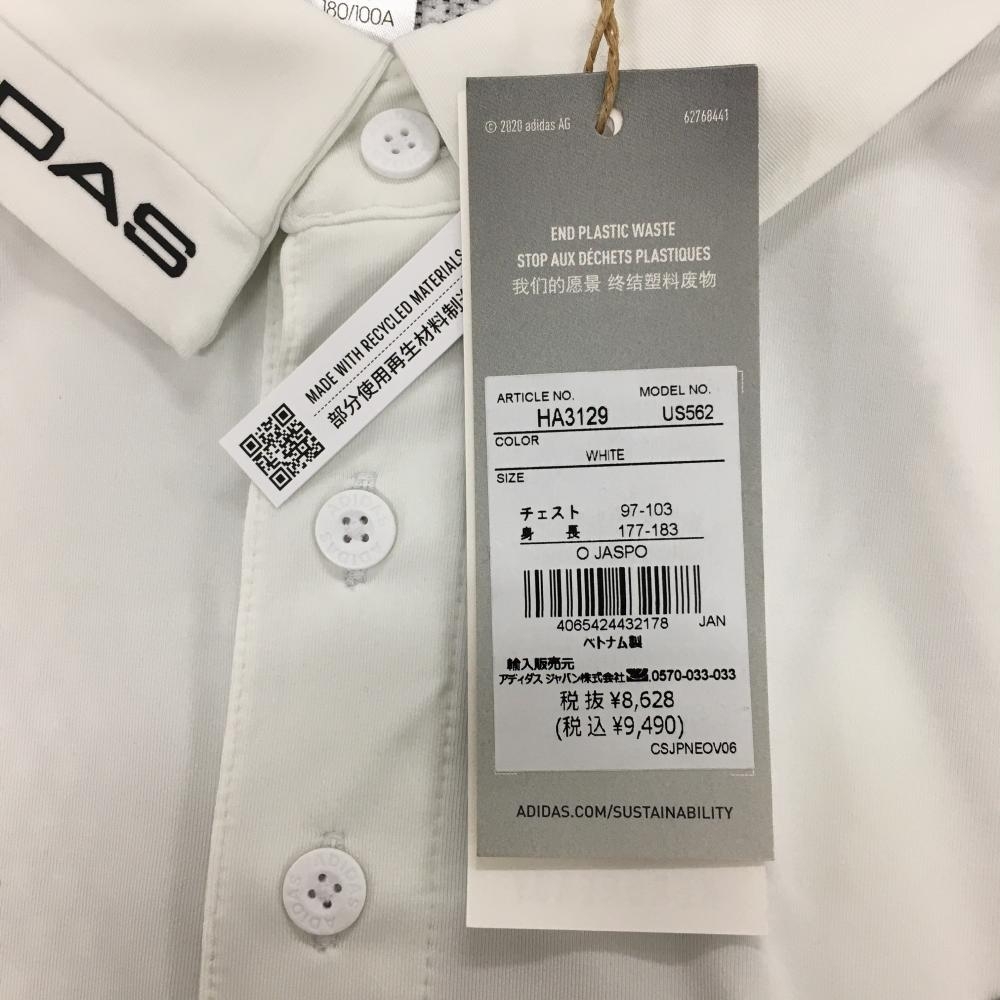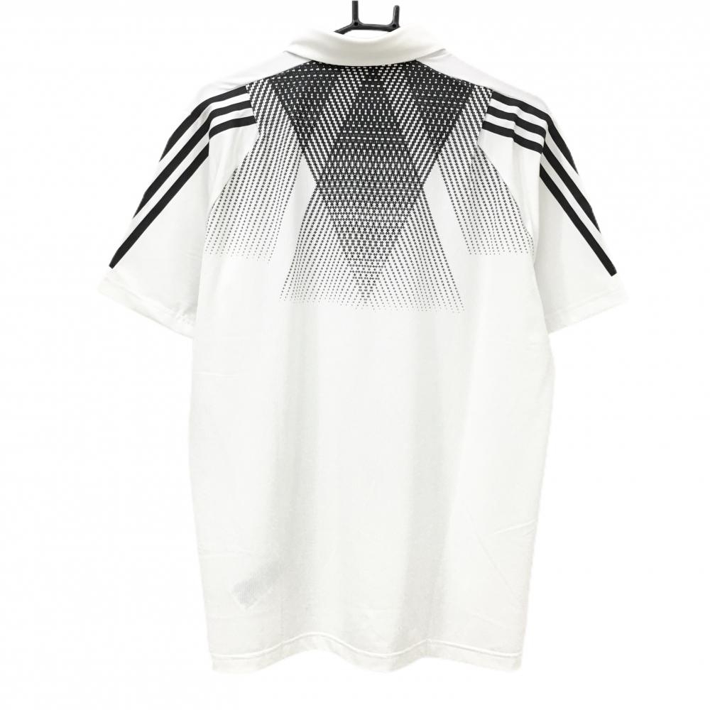 【新品】アディダス 半袖ポロシャツ 白×黒 背面上部柄 ボタンダウン 袖3ライン メンズ O ゴルフウェア adidas