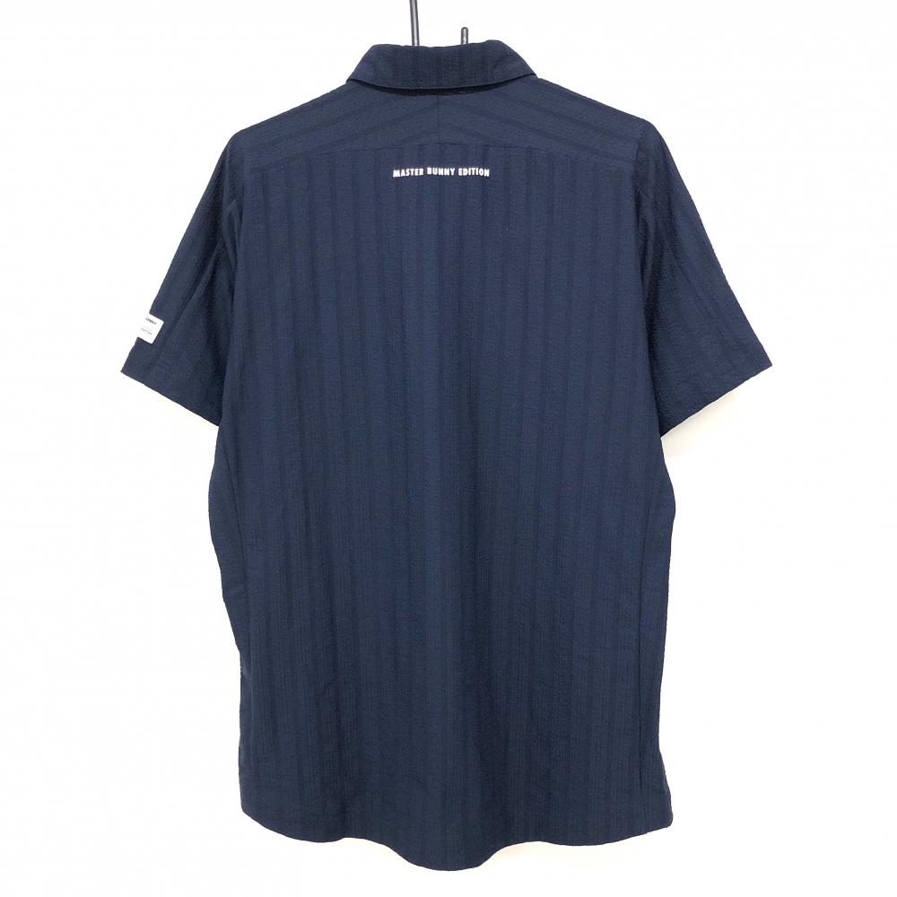 【超美品】マスターバニー 半袖ポロシャツ ネイビー ストライプ織生地 メンズ 7(2XL) ゴルフウェア 大きいサイズ MASTER BUNNY EDITION
