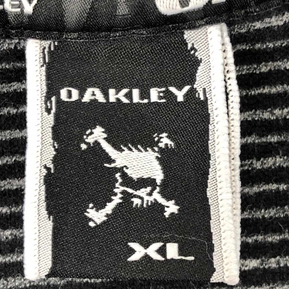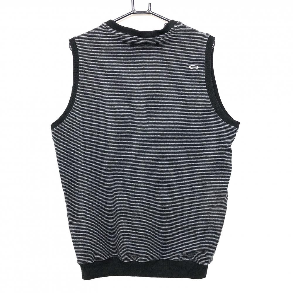 【美品】オークリー ベスト 黒×グレー 細ボーダー Vネック メンズ XL ゴルフウェア Oakley