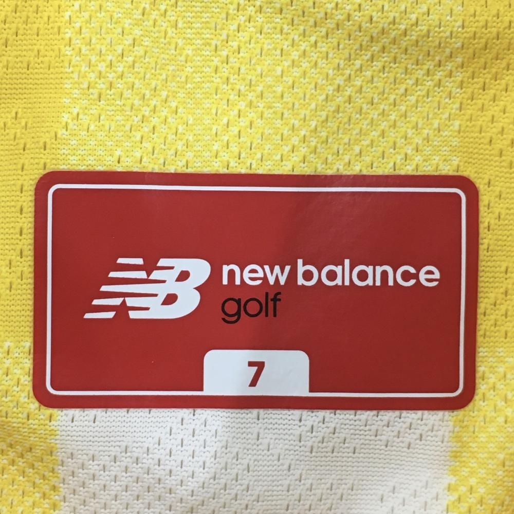 【超美品】ニューバランスゴルフ 半袖ポロシャツ イエロー×白 チェック柄 メンズ 7(2XL) ゴルフウェア 大きいサイズ New Balance