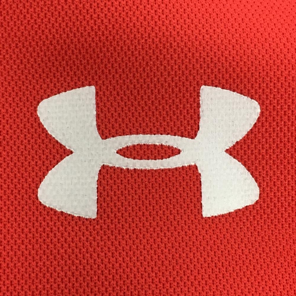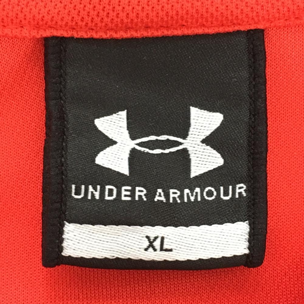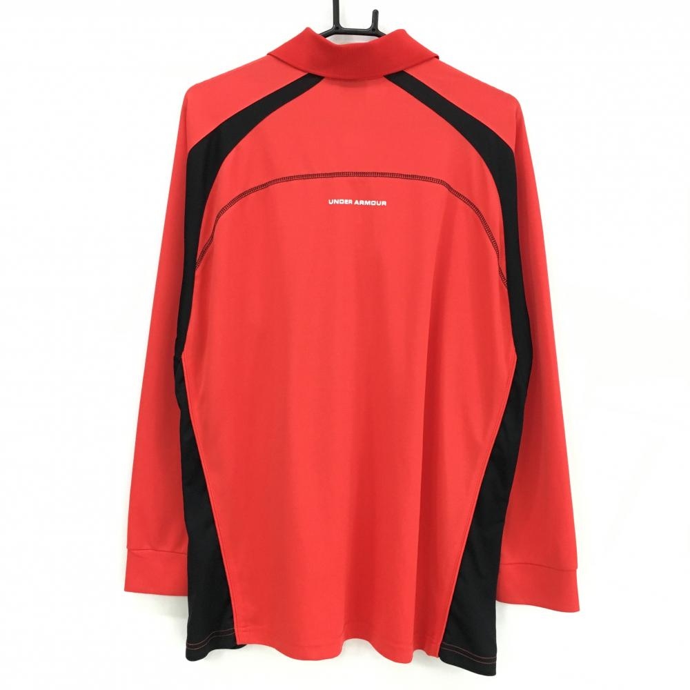 【美品】アンダーアーマー 長袖ポロシャツ レッド×黒 ロゴプリント メンズ XL ゴルフウェア UNDER ARMOUR