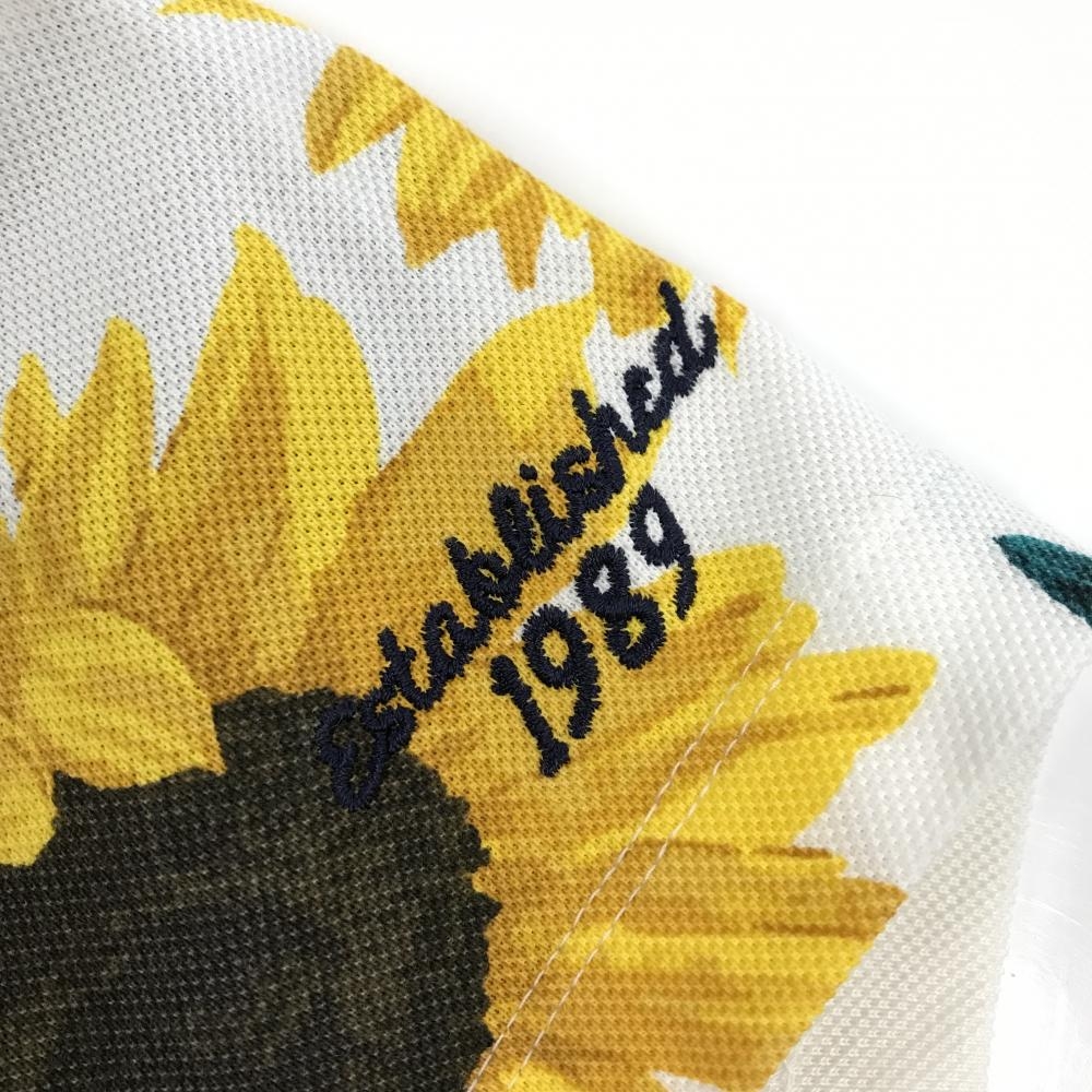 【美品】パーリーゲイツ 半袖ポロワンピース 白×イエロー ひまわり総柄 レディース 0(S) ゴルフウェア PEARLY GATES