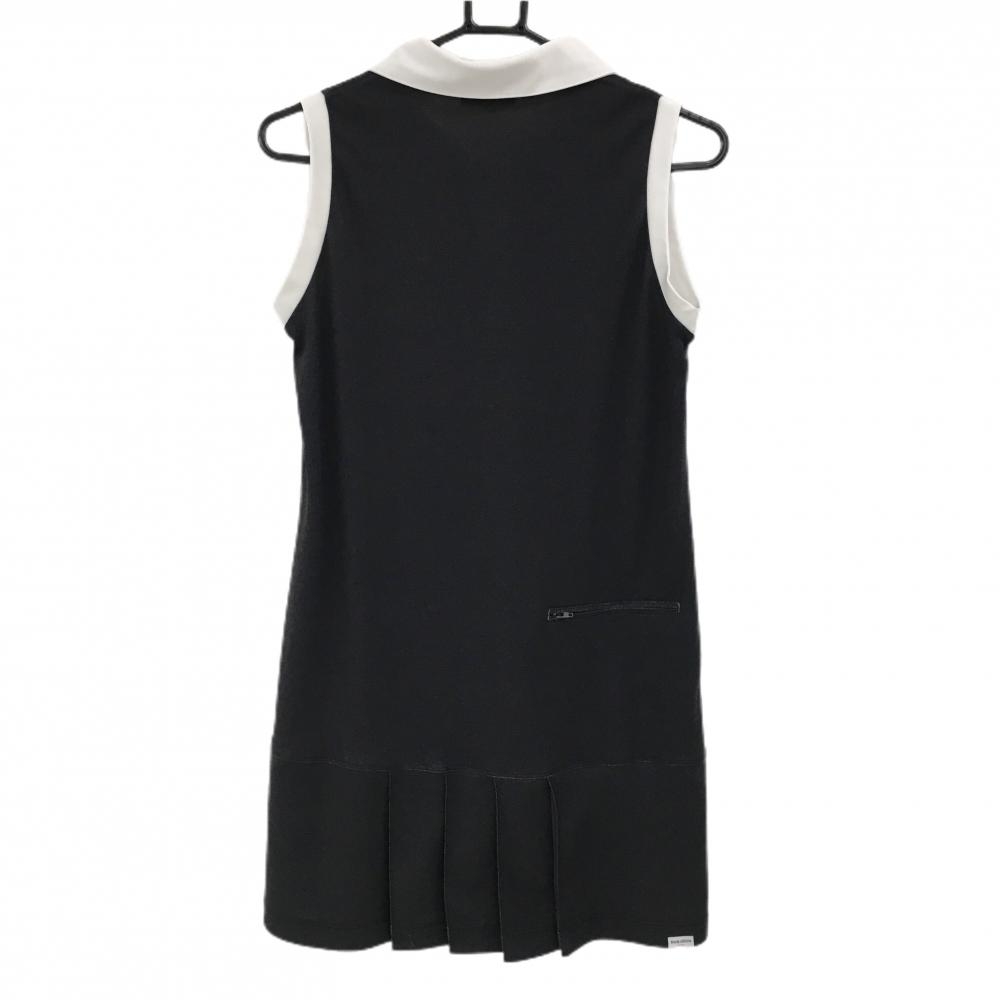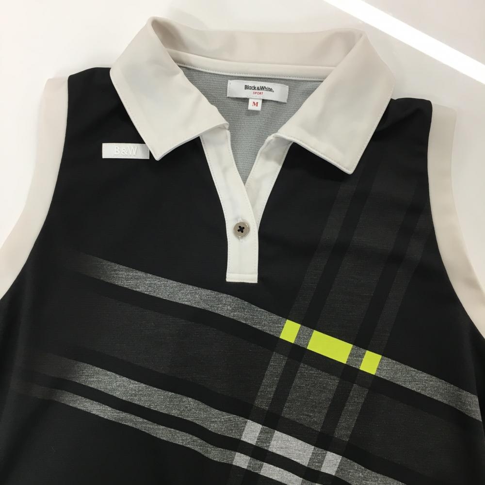【美品】ブラックアンドホワイト ノースリーブスキッパーワンピース 黒×白 前身頃一部チェック レディース M ゴルフウェア Black&White