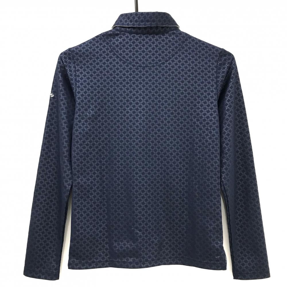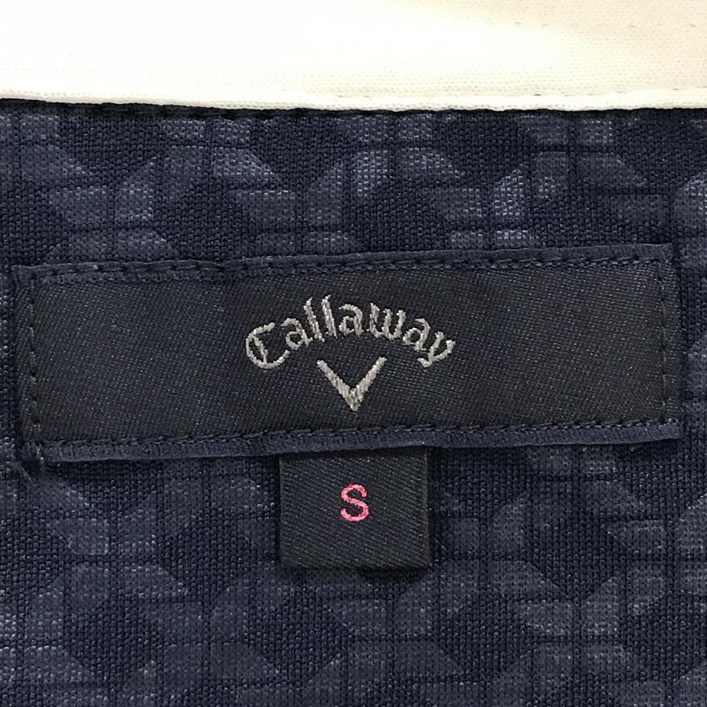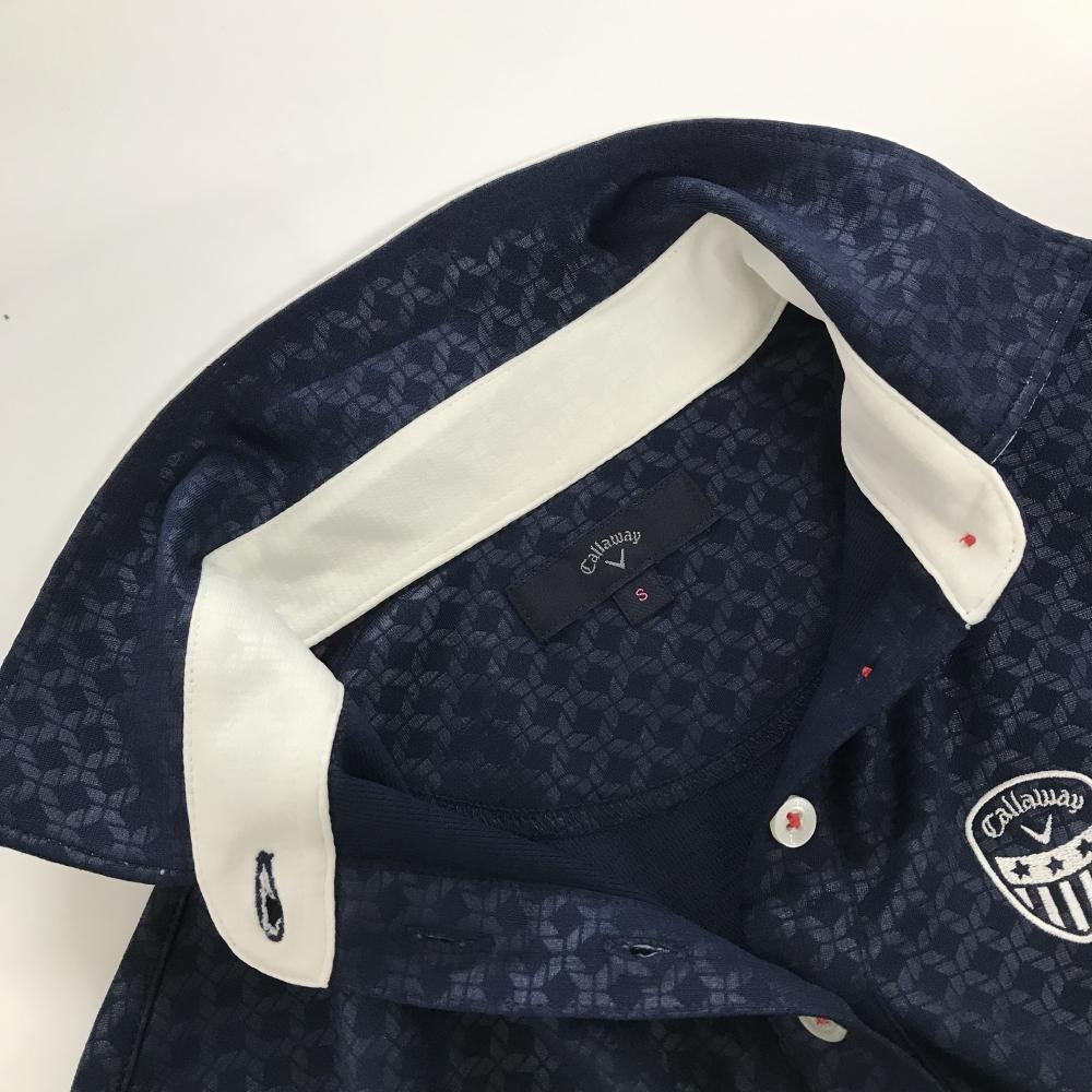 【美品】キャロウェイ 長袖ポロシャツ ネイビー×白 斜め格子風地模様 ロゴ刺しゅう レディース S ゴルフウェア Callaway