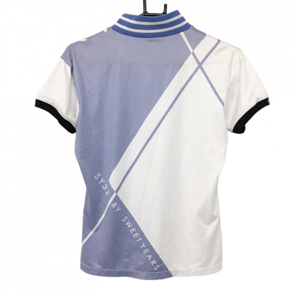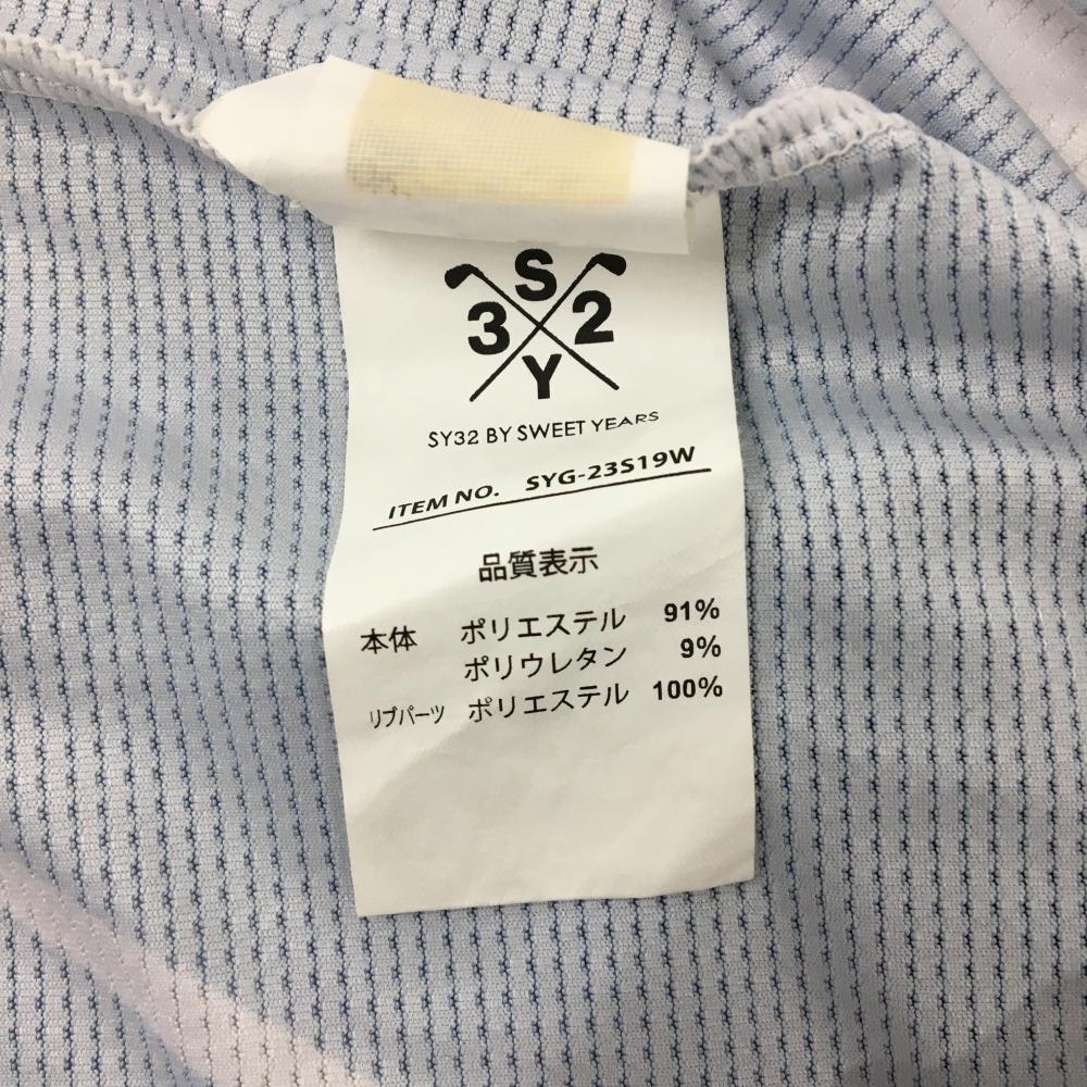 【超美品】SY32 半袖ハイネックシャツ 白×ライトブルー メッシュ調 レディース M ゴルフウェア SY32 BY SWEET YEARS