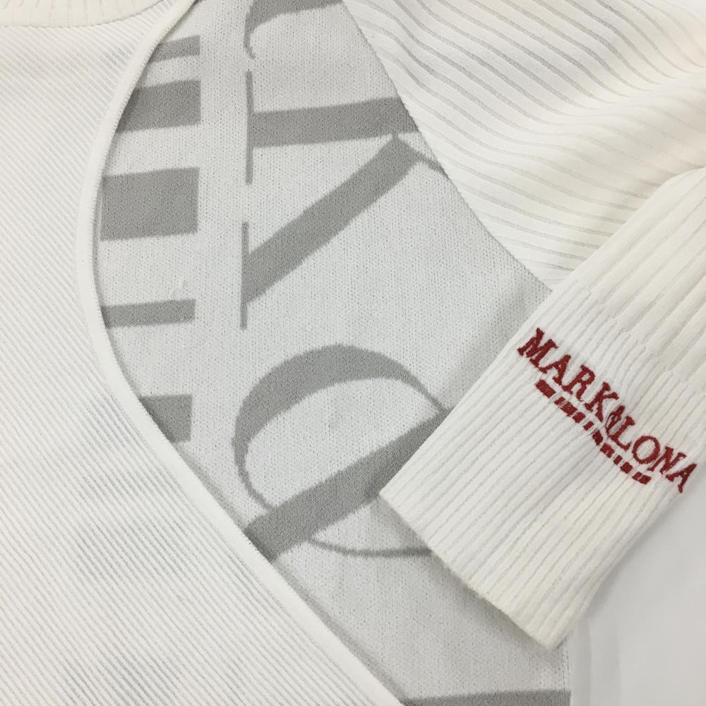 マークアンドロナ ハイネックセーター 白×グレー 一部総柄 ニット レディース 36(S) ゴルフウェア MARK&LONA