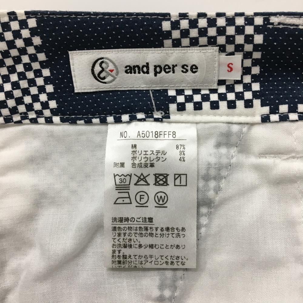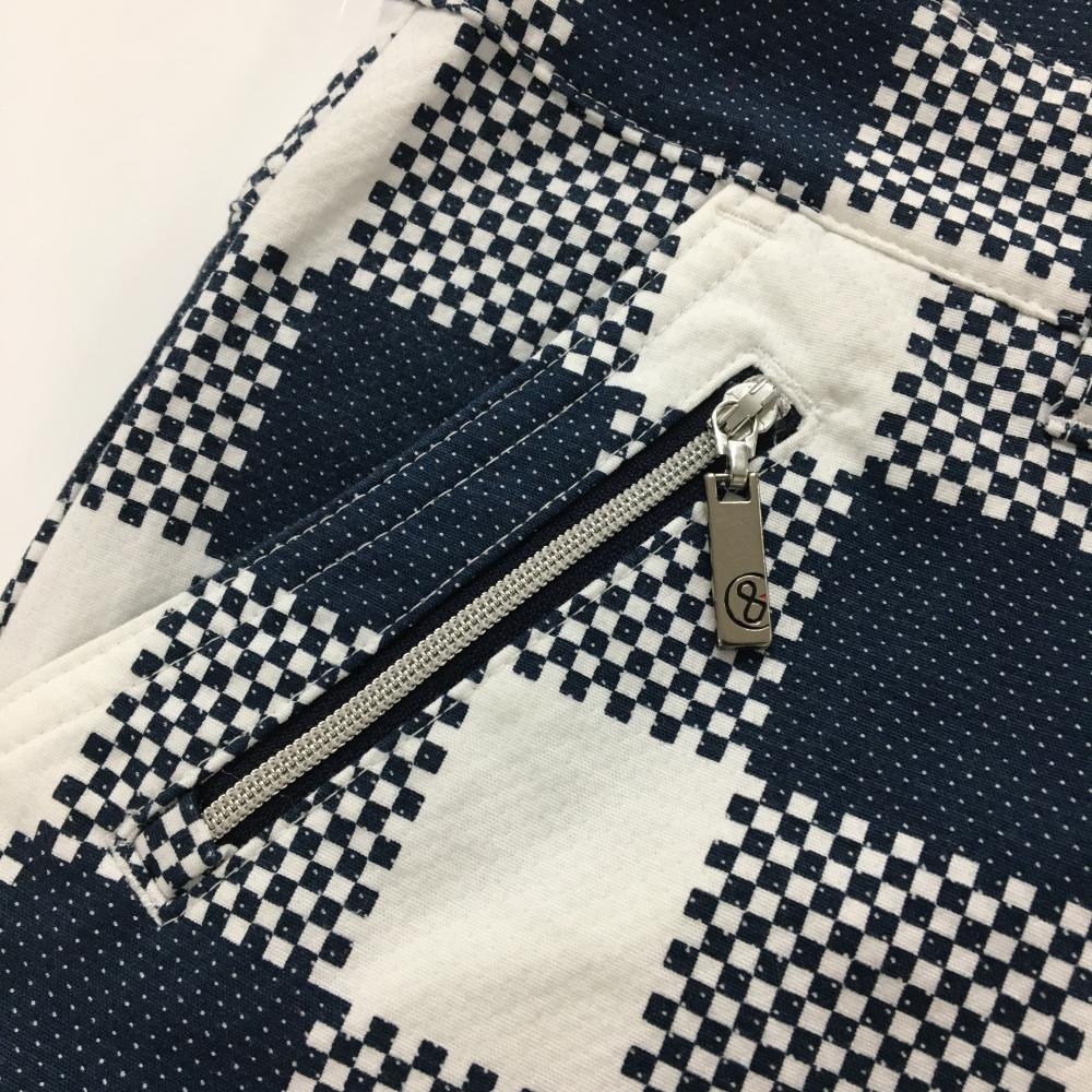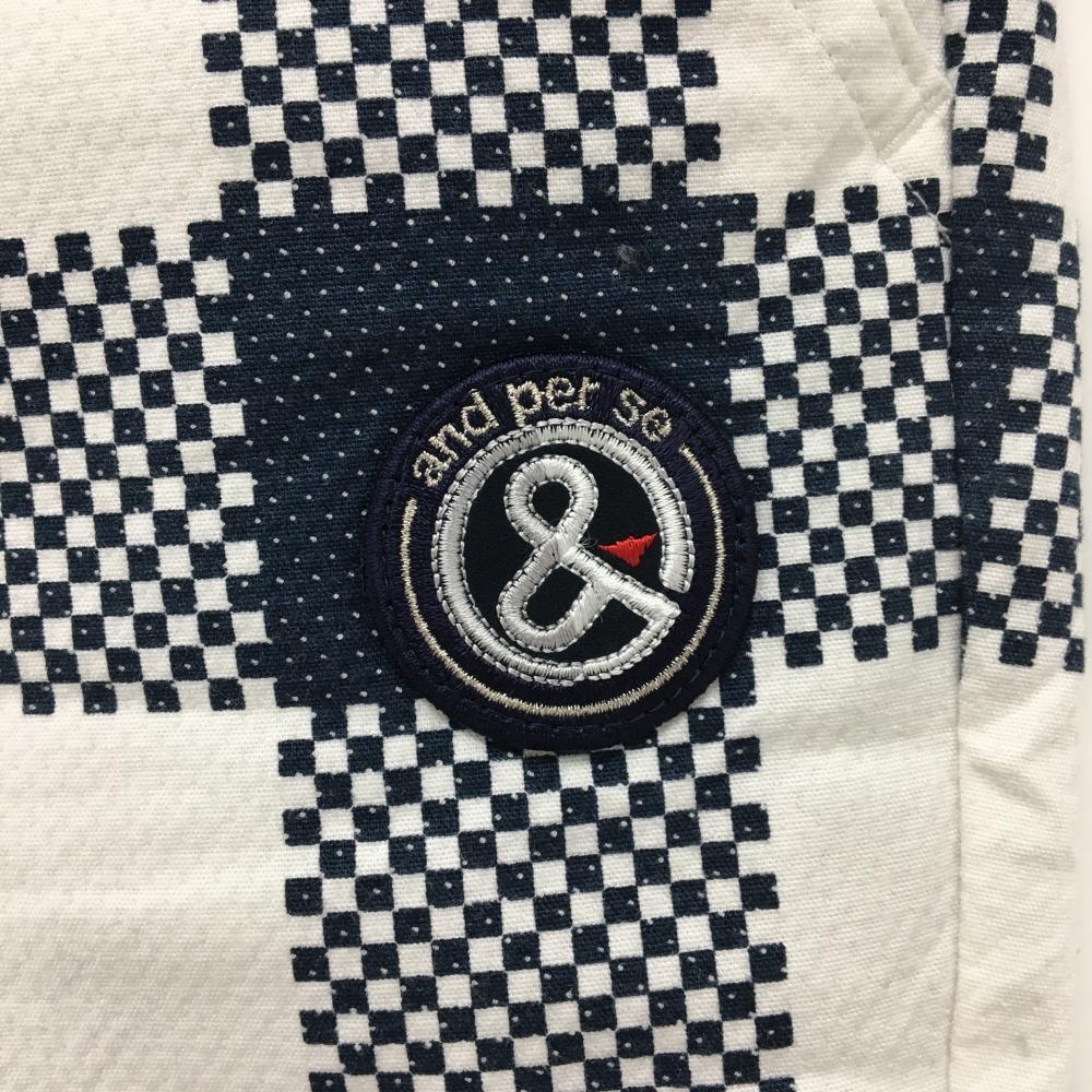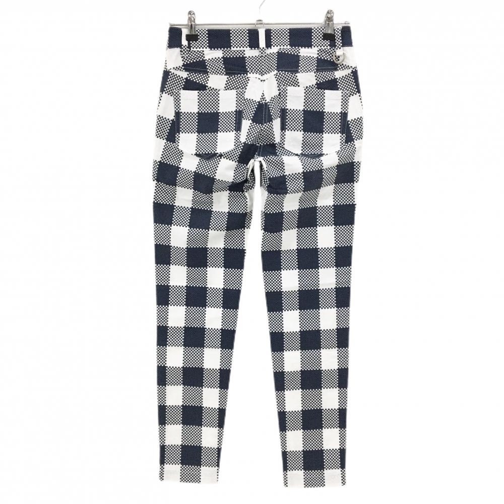 【超美品】アンパスィ パンツ 白×ネイビー ブロックチェック ストレッチ レディース S ゴルフウェア and per se