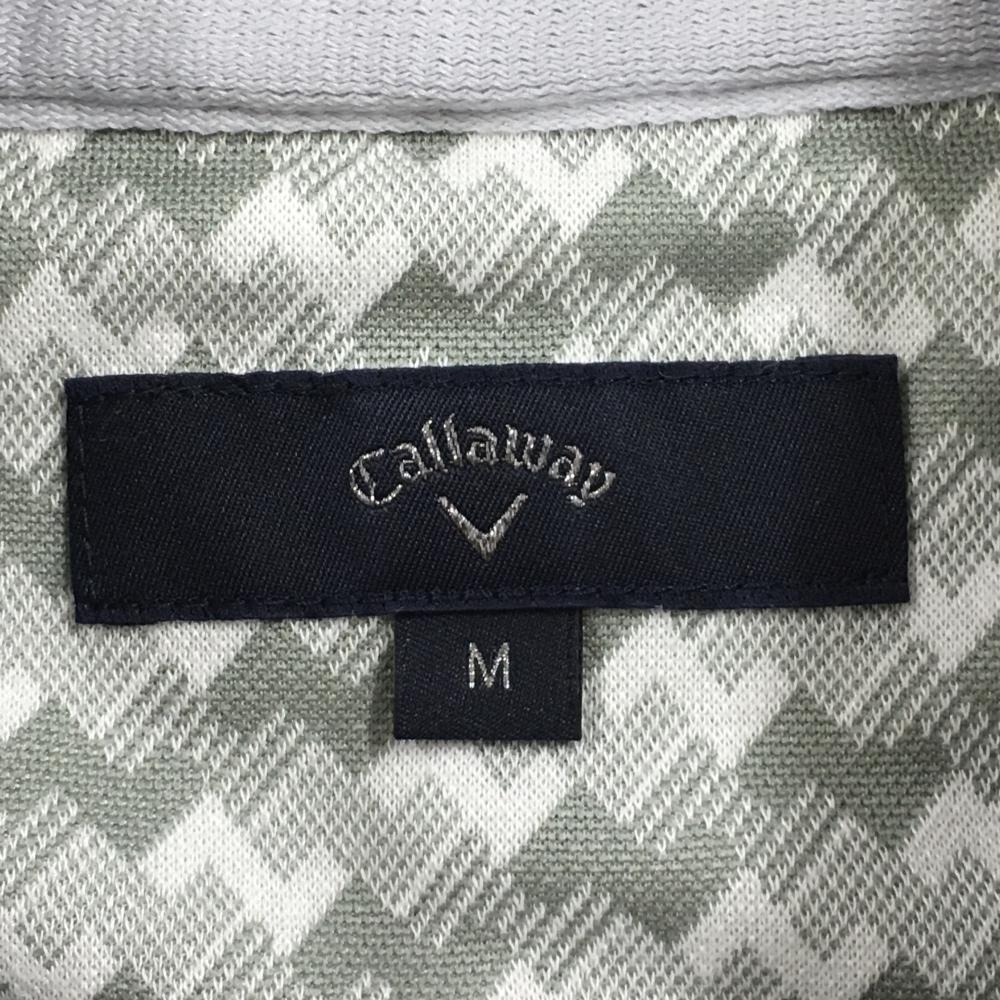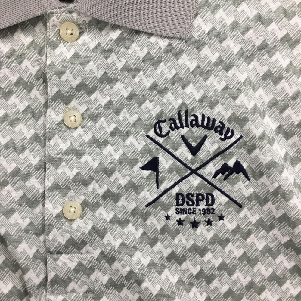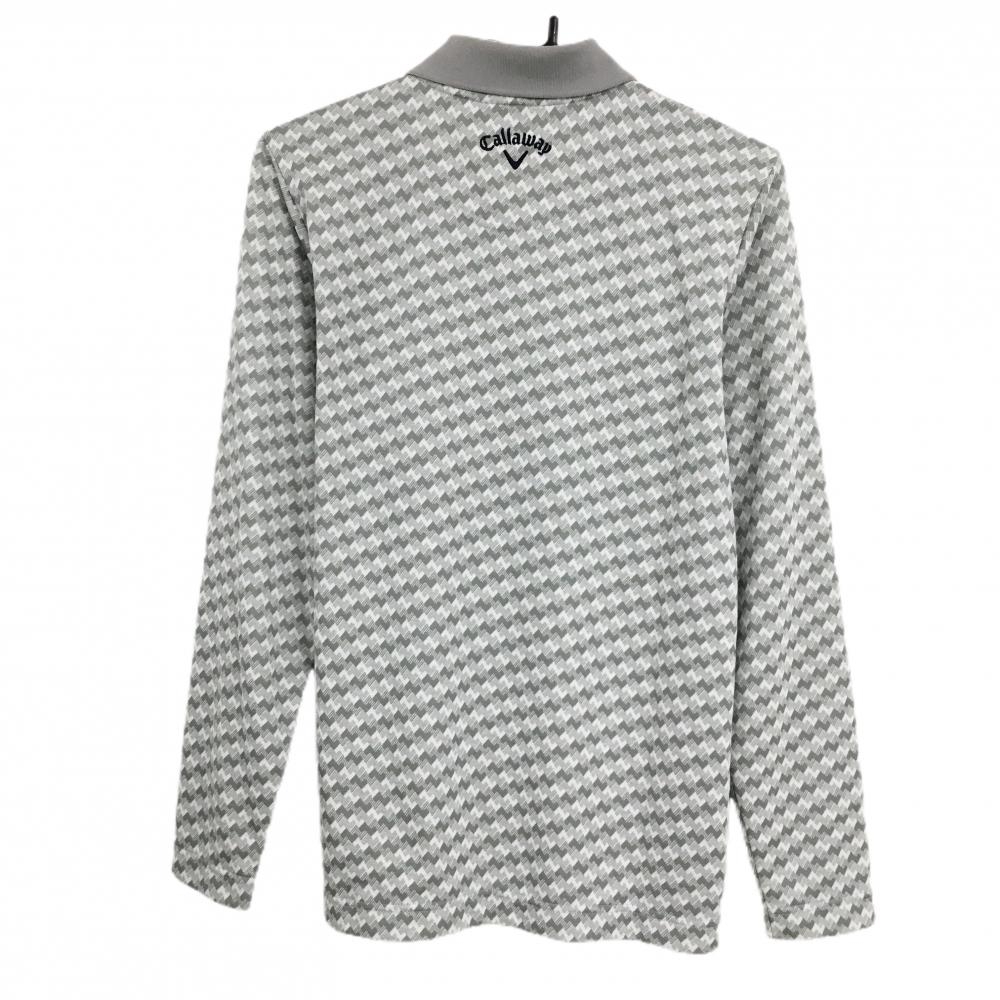 【超美品】キャロウェイ 長袖ポロシャツ ライトグレー×白 総柄 ロゴ刺しゅう メンズ M ゴルフウェア Callaway