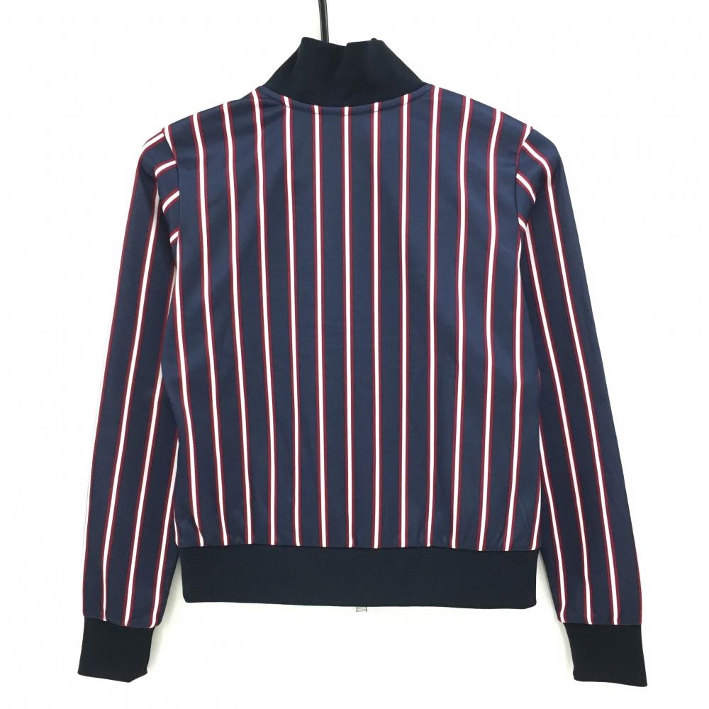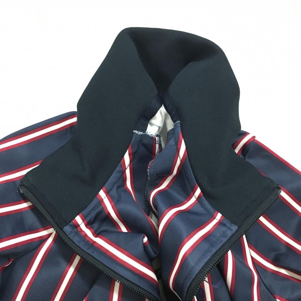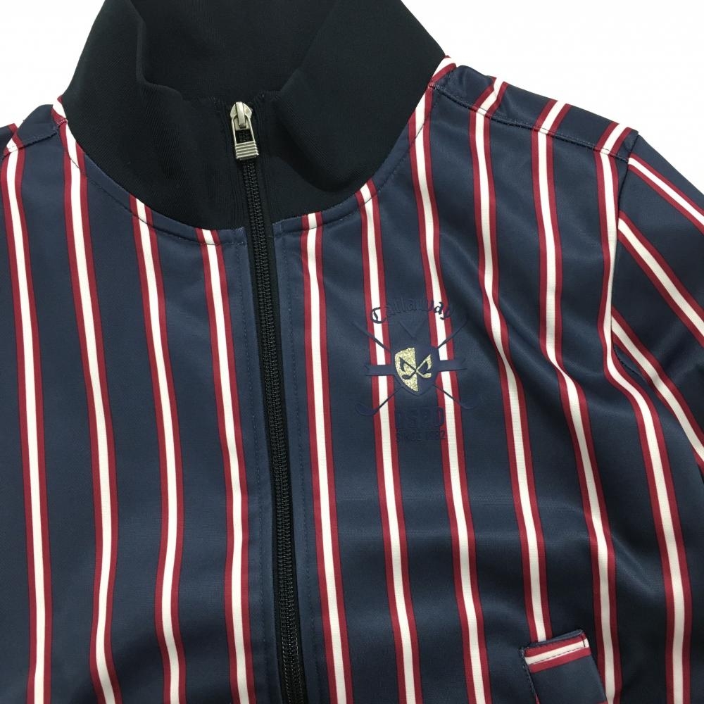 【美品】キャロウェイ ジャケットブルゾン ネイビー×レッド ストライプ 裏微起毛 ロゴプリント レディース S ゴルフウェア Callaway