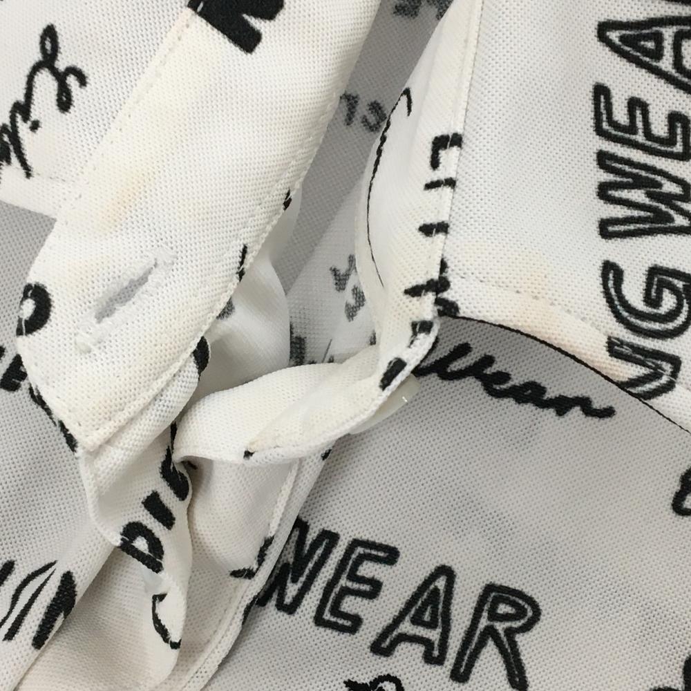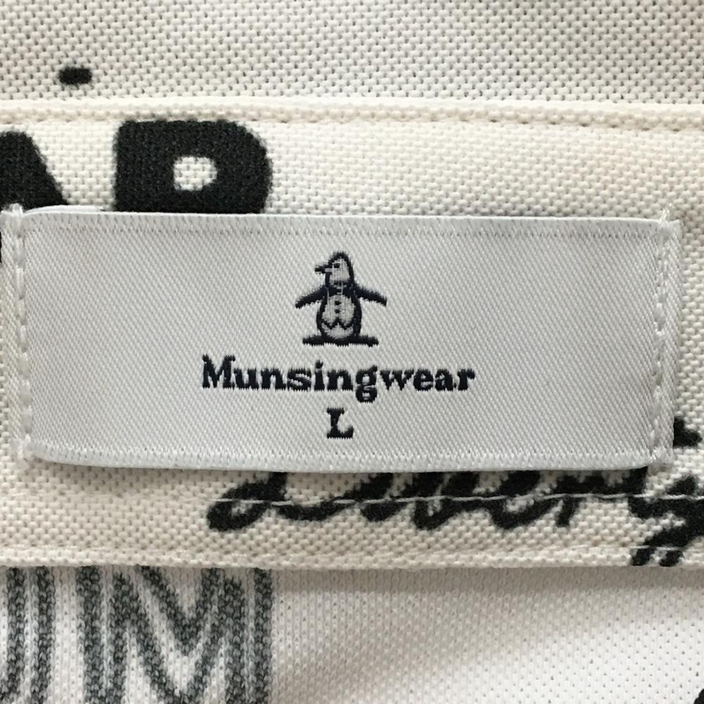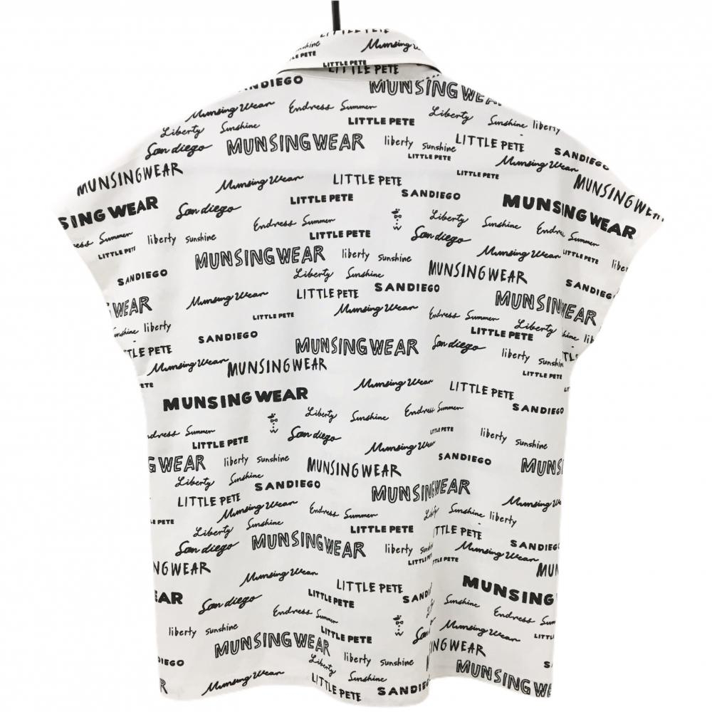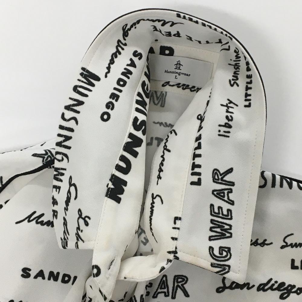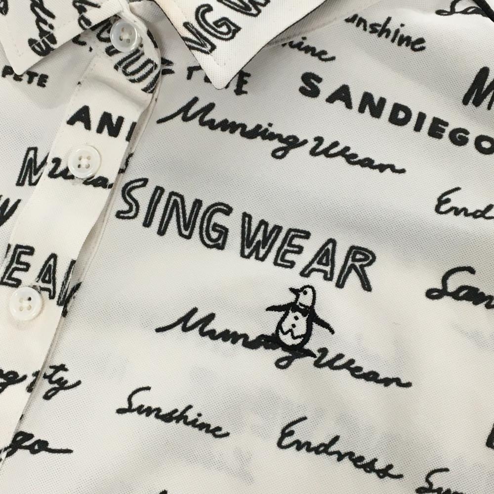 マンシングウェア 半袖ポロシャツ 白×黒 英字総柄 ロゴ刺しゅう フレンチスリーブ レディース L ゴルフウェア Munsingwear