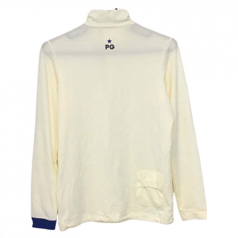 【美品】パーリーゲイツ 長袖ハイネックシャツ 白×黒 表微起毛 ハーフジップ レディース 1(M) ゴルフウェア 2023年モデル PEARLY GATES