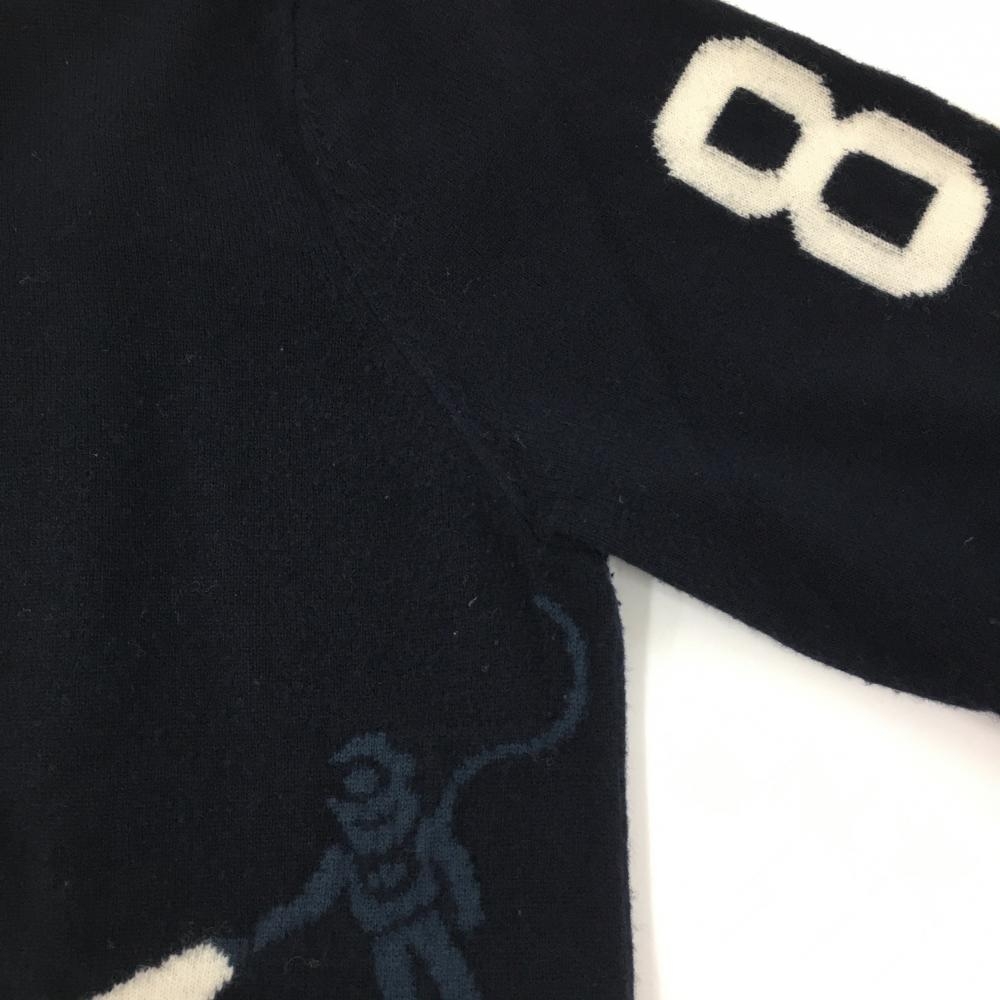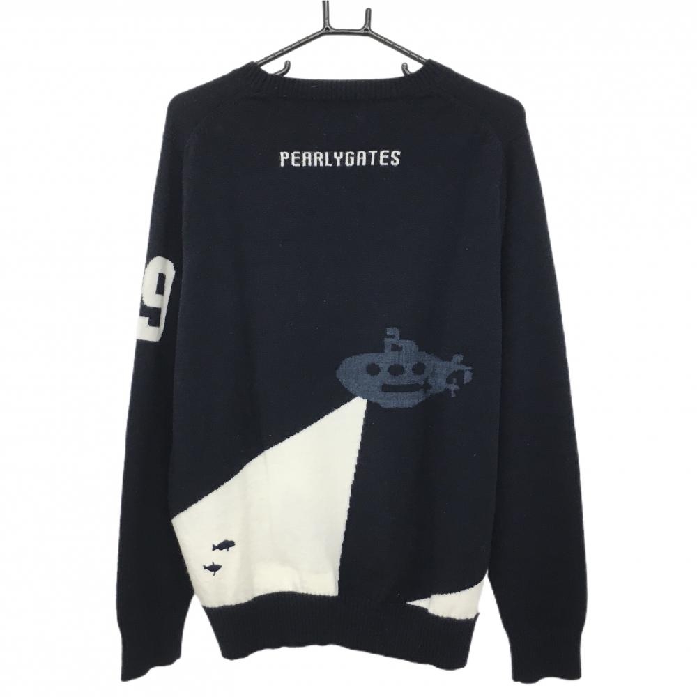 パーリーゲイツ セーター ネイビー×白 潜水艦 ニット ウール100% メンズ 5(L) ゴルフウェア PEARLY GATES