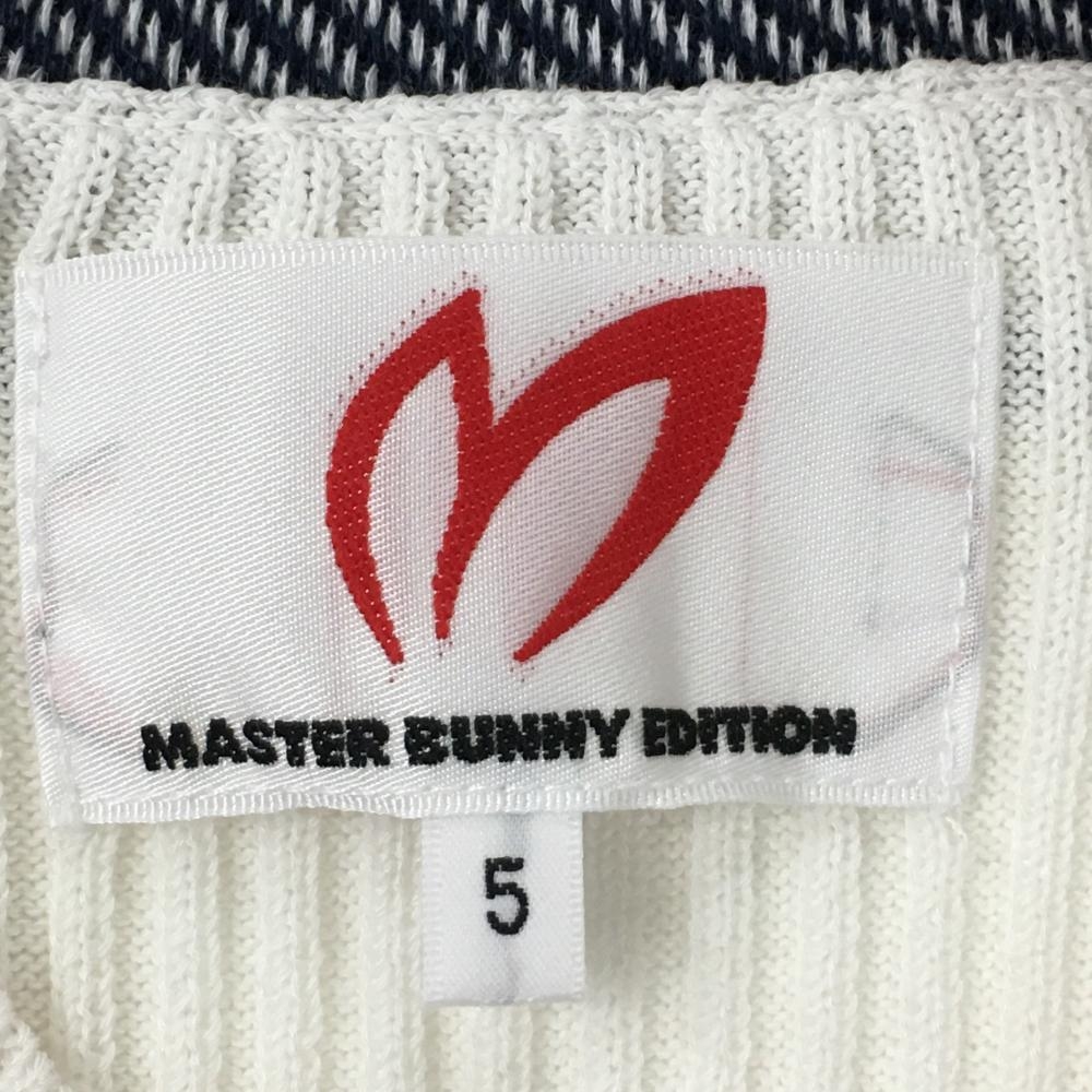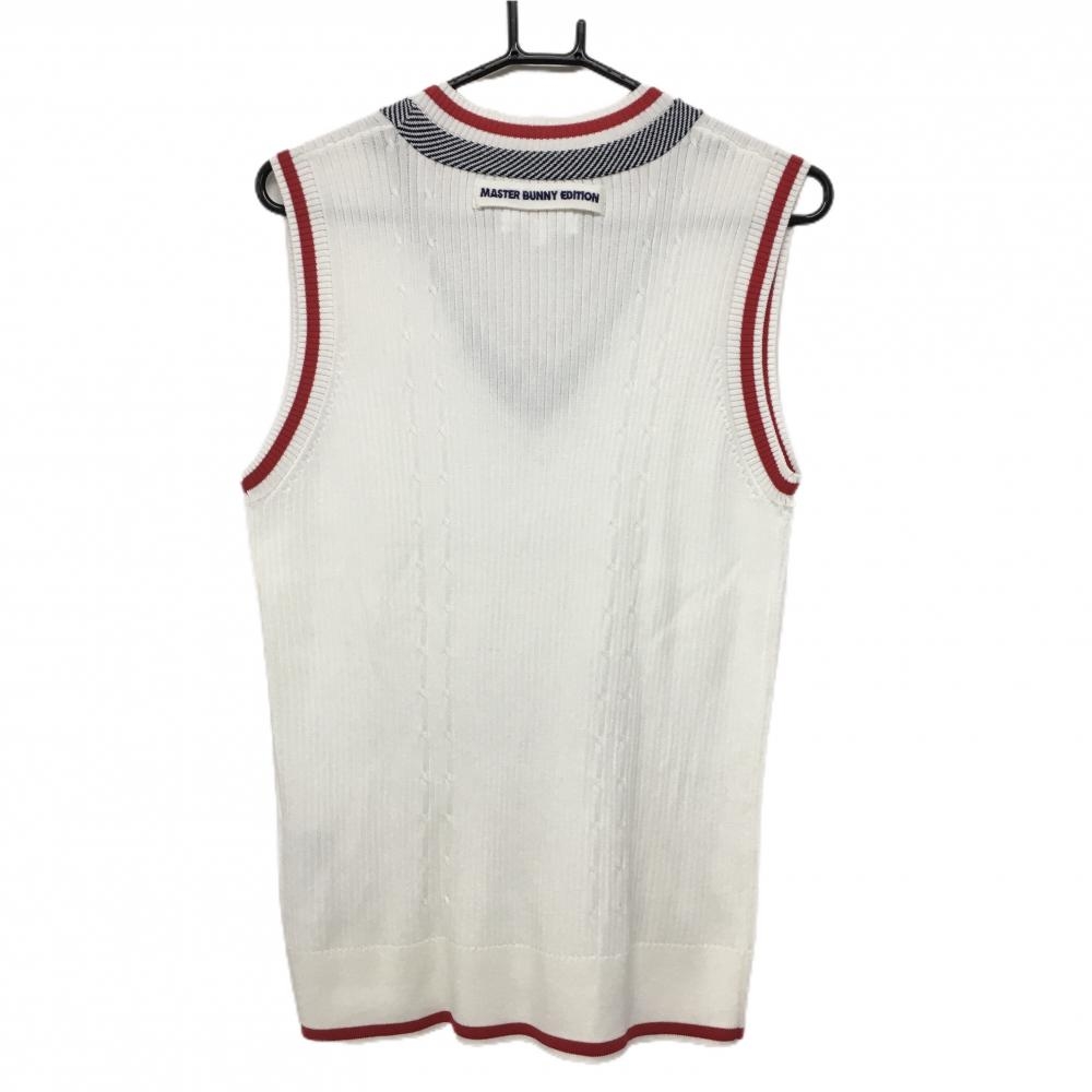 【超美品】マスターバニー ニットベスト 白×レッド Vネック コットン混 メンズ 5(L) ゴルフウェア MASTER BUNNY EDITION