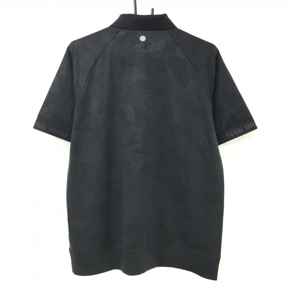 【超美品】ブリーフィング 半袖ポロシャツ 黒 カモフラ柄地模様 迷彩 袖口ロゴ メンズ M ゴルフウェア BRIEFING