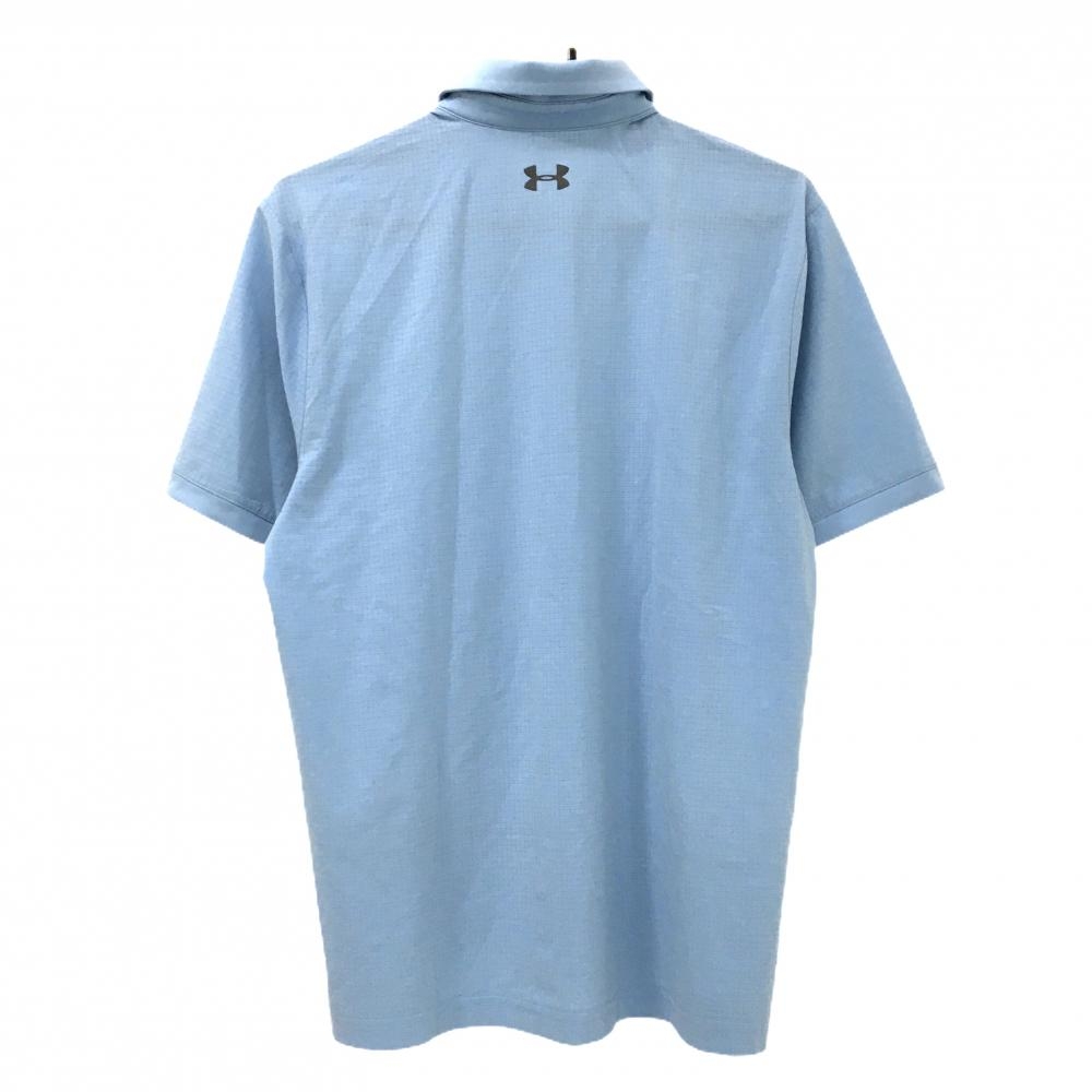 【超美品】アンダーアーマー 半袖ポロシャツ ライトブルー 細目格子柄地模様 メッシュ調 メンズ MD/M/M ゴルフウェア UNDER ARMOUR