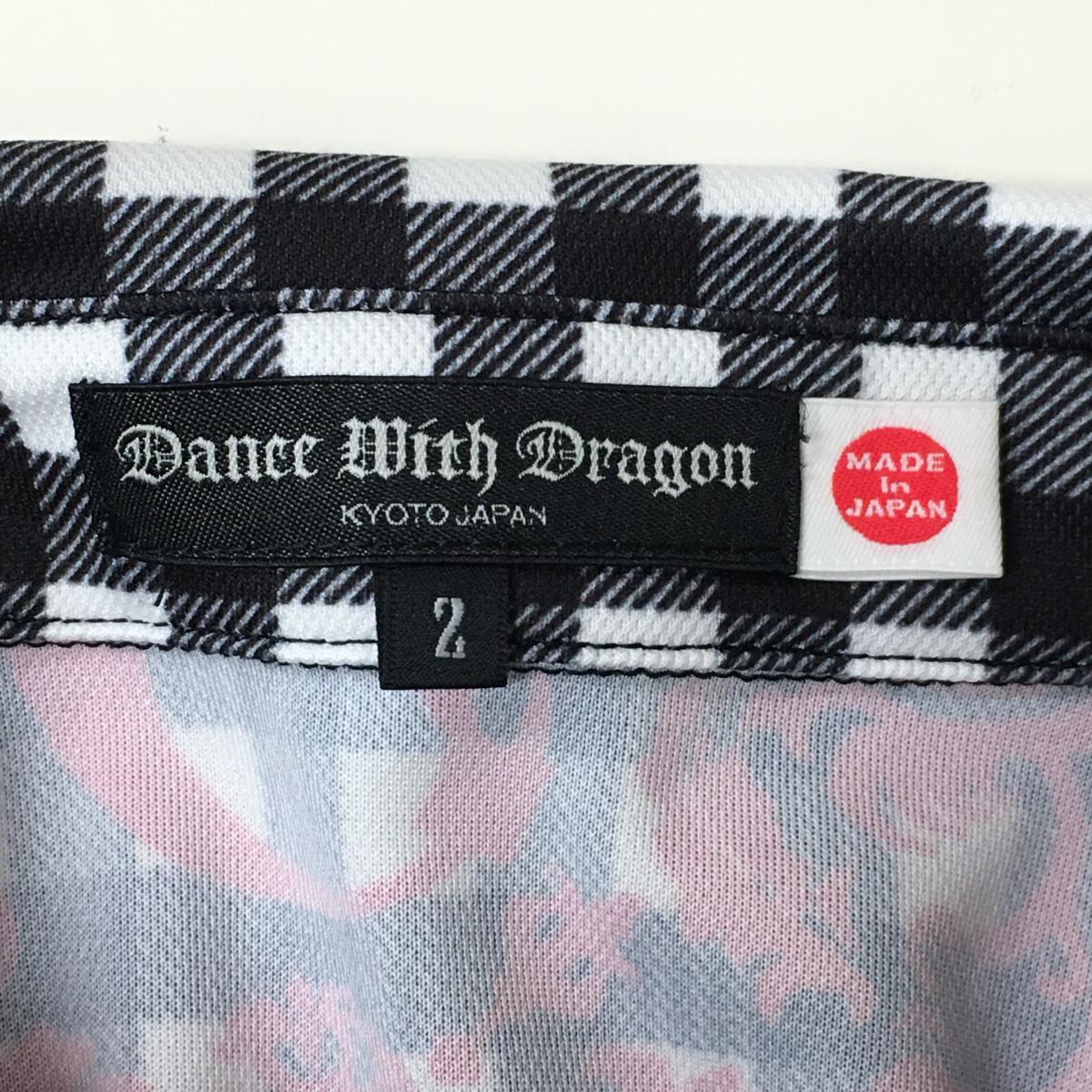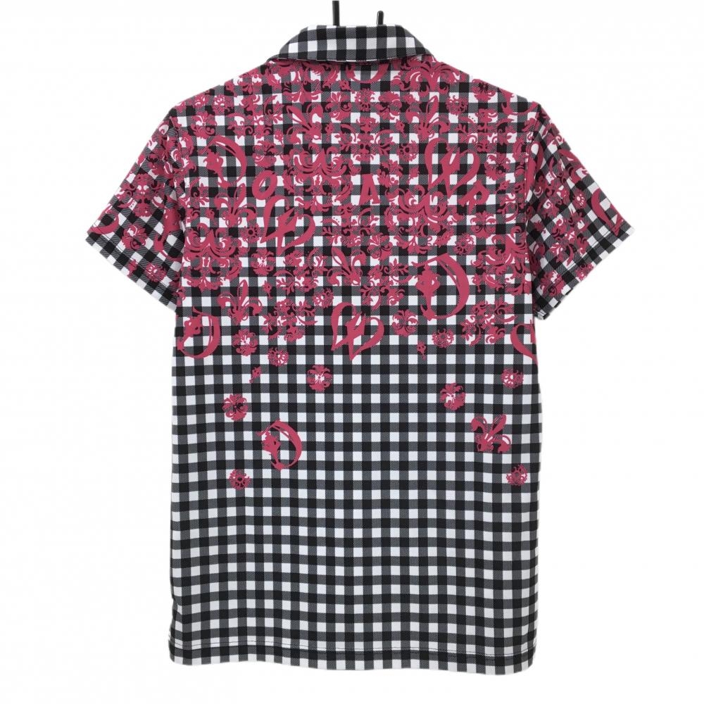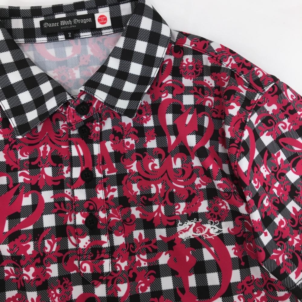 【超美品】ダンスウィズドラゴン 半袖ポロシャツ 黒×白×ピンク チェック 総柄 メンズ 2(M) ゴルフウェア Dance With Dragon