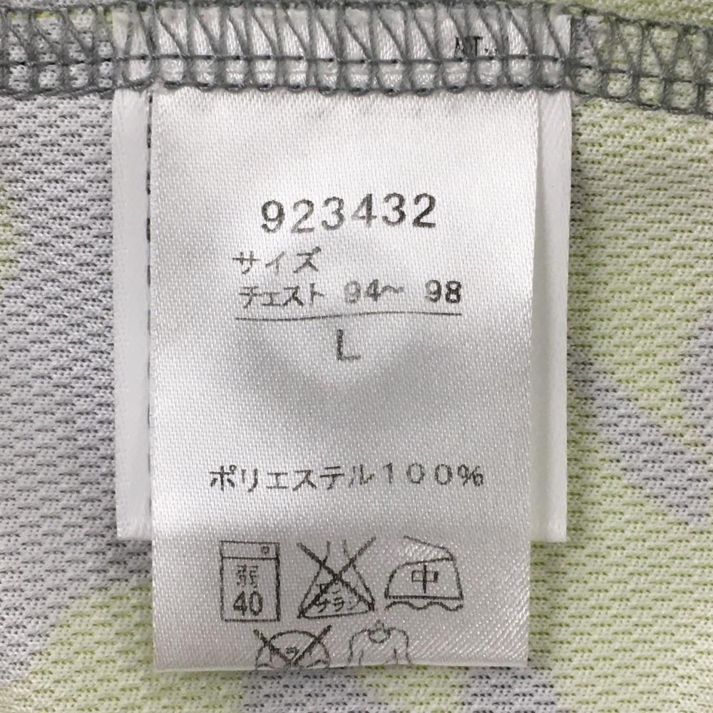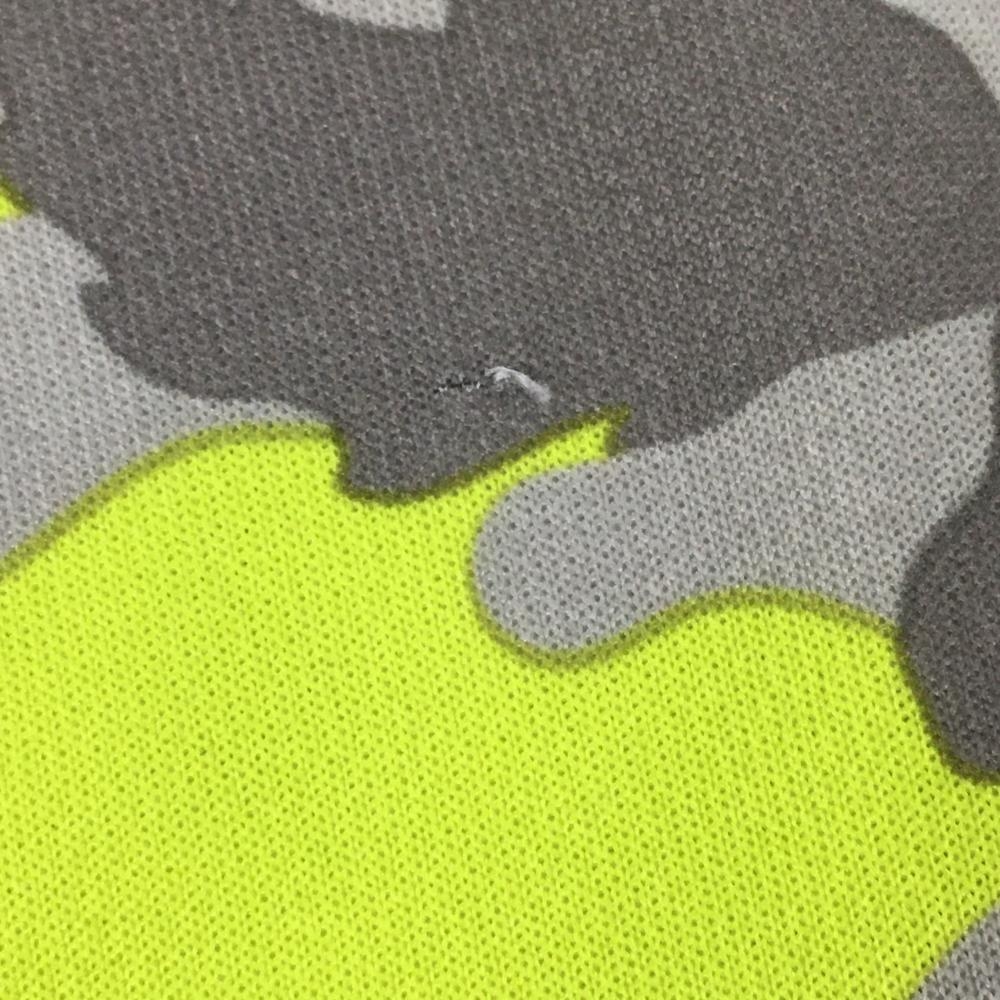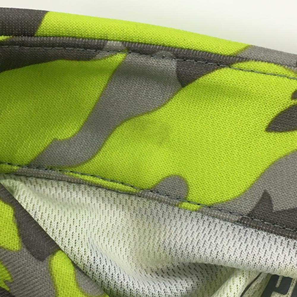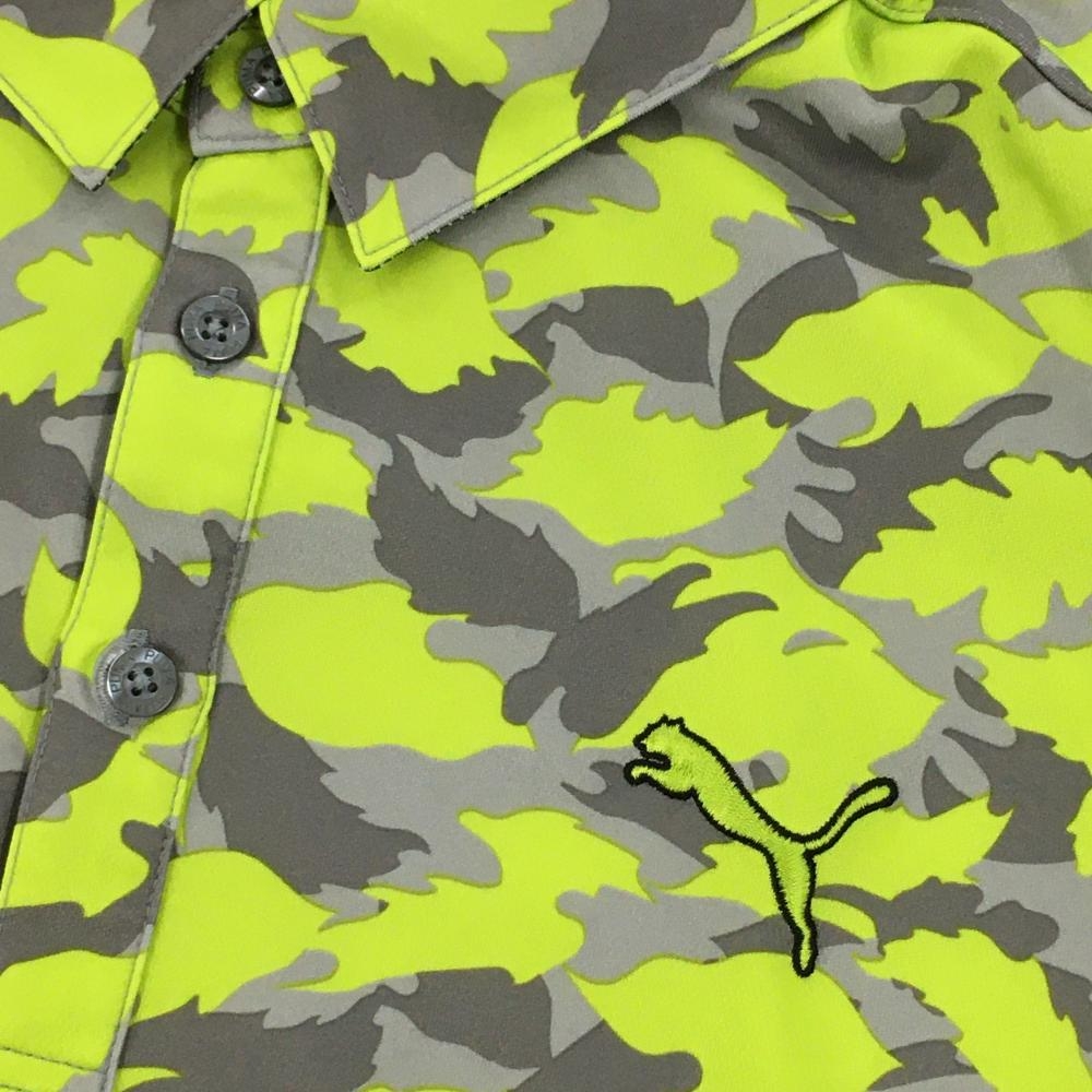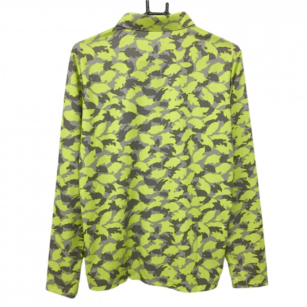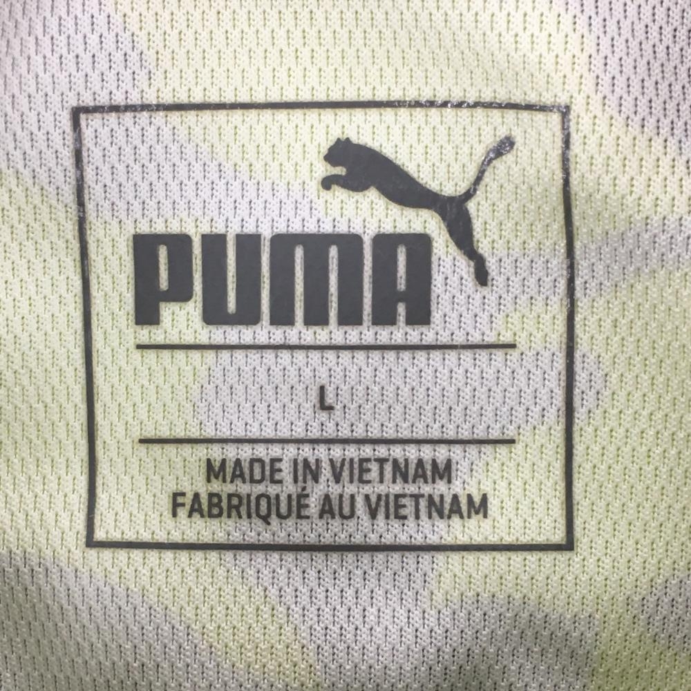 【美品】プーマ 長袖ポロシャツ ライトグリーン×グレー リーフ柄 カモフラ風 ロゴ刺しゅう メンズ L ゴルフウェア PUMA