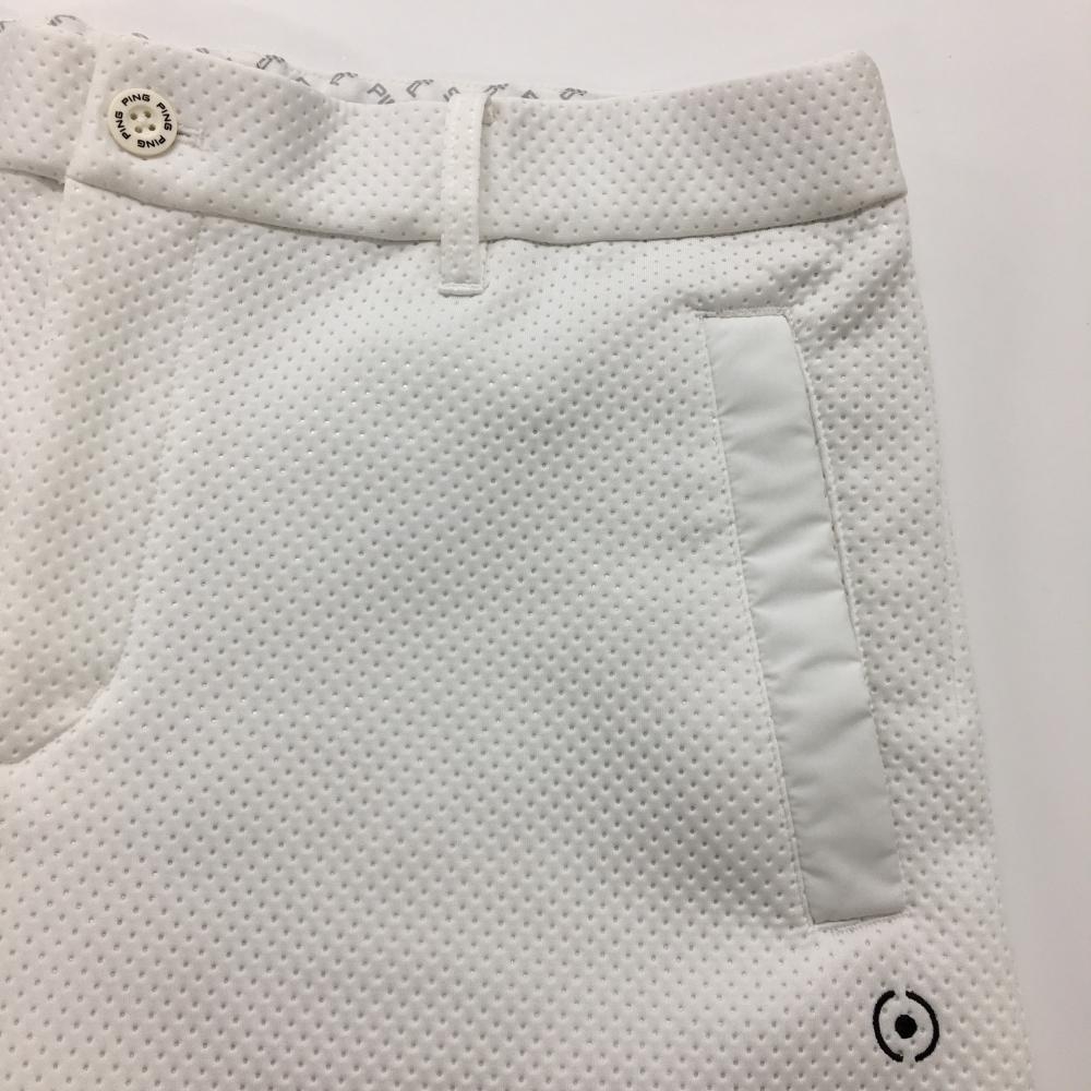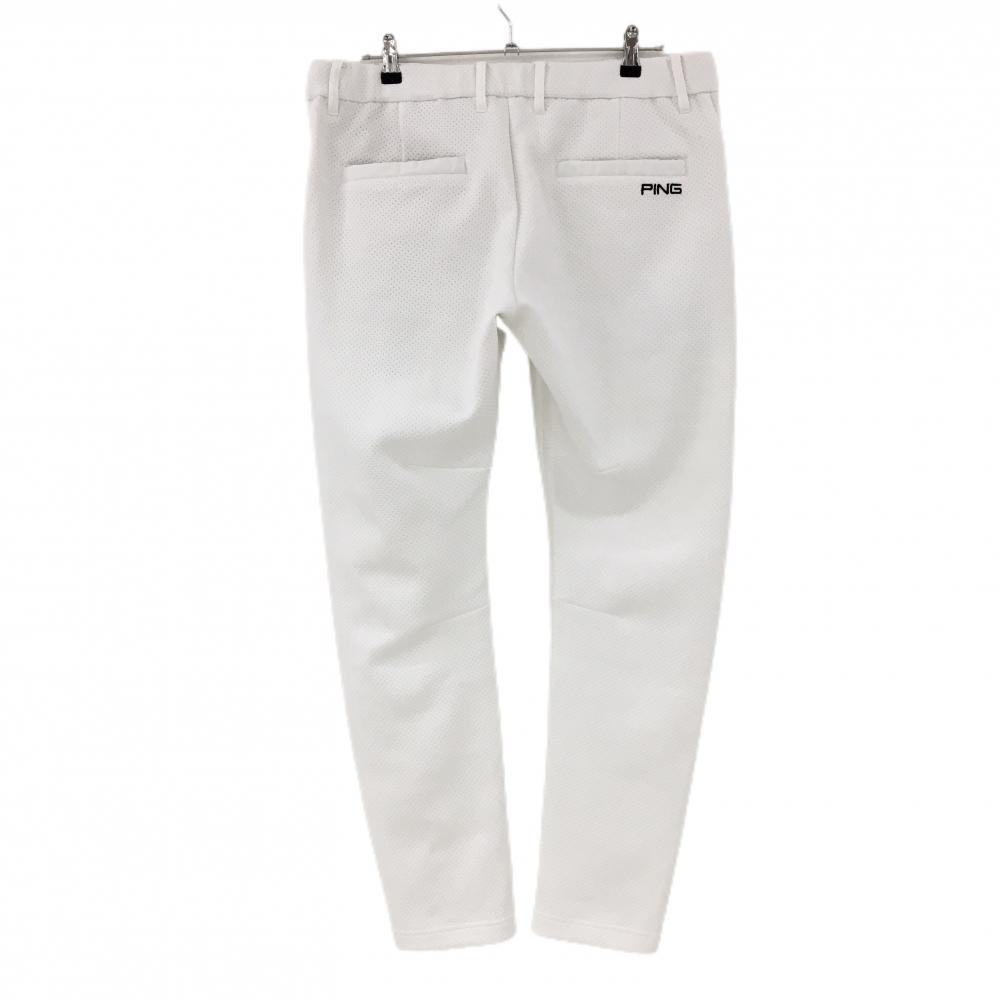 【美品】ピン パンツ 白 ドット調 パンチング風 バックロゴ刺しゅう メンズ LL ゴルフウェア PING