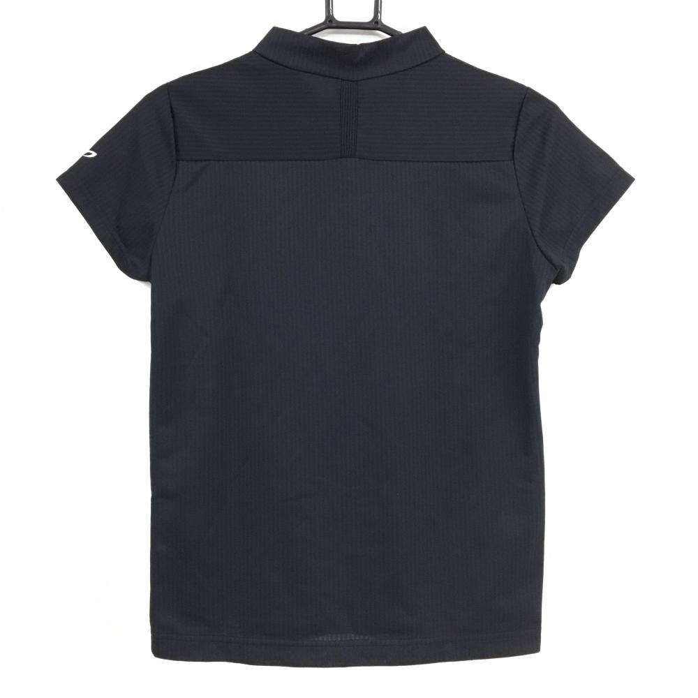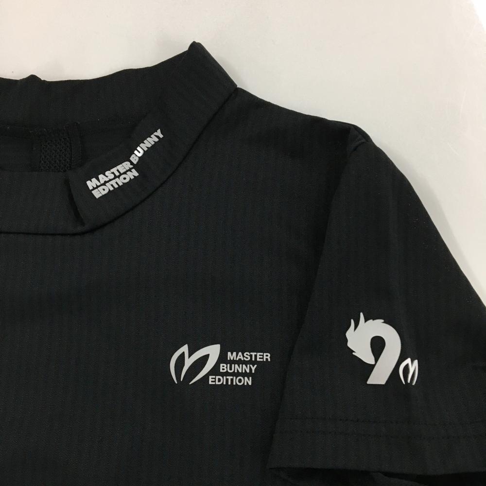 【超美品】マスターバニー 半袖ハイネックシャツ 黒 ストライプ地模様 ネックロゴ レディース 0(S) ゴルフウェア MASTER BUNNY EDITION