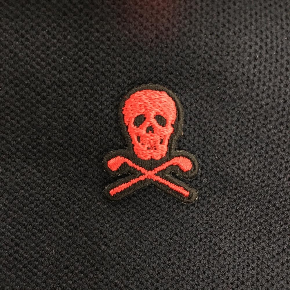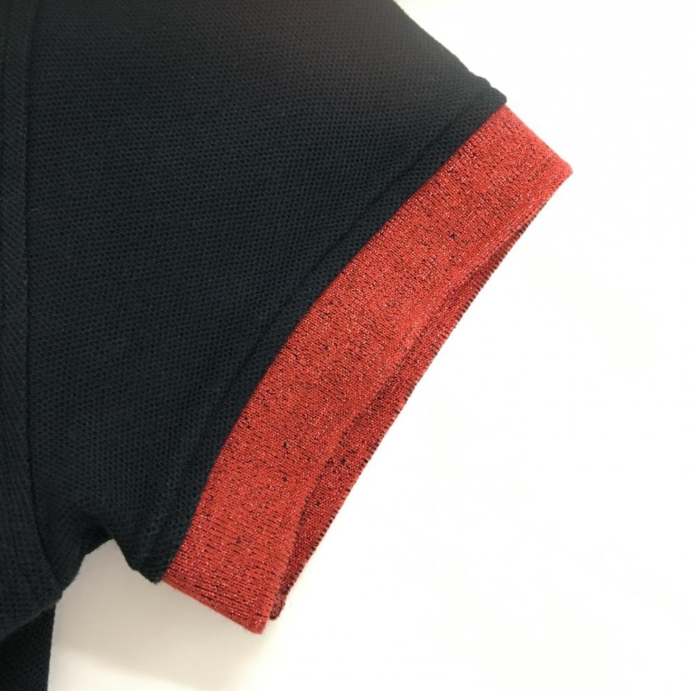 【超美品】マークアンドロナ 半袖ポロシャツ 黒 襟裏・袖口ラメレッド スカル レディース M ゴルフウェア MARK&LONA