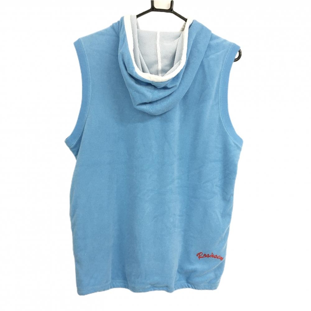 ロサーセン フード付きベスト ライトブルー×白 パイル地 ロゴ刺しゅう 裏地メッシュ メンズ L ゴルフウェア Rosasen