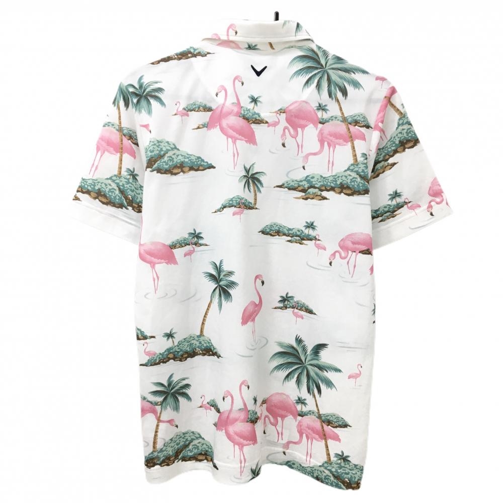 【超美品】キャロウェイ 半袖ポロシャツ 白×ピンク フラミンゴ柄 ロゴ刺しゅう メンズ L ゴルフウェア Callaway