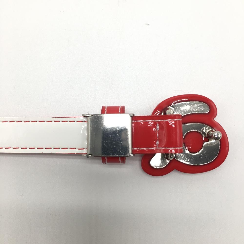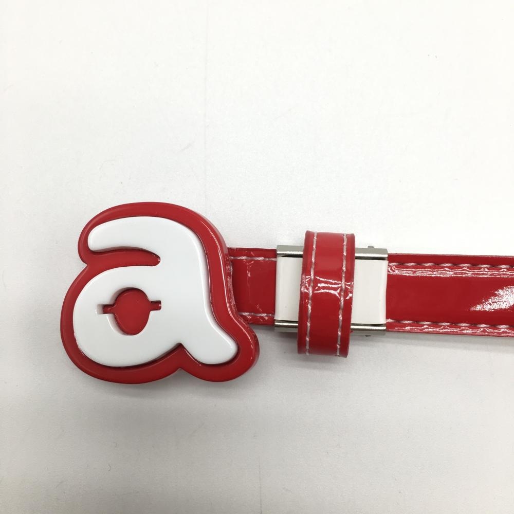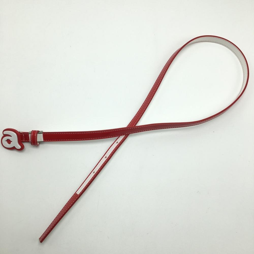 【美品】アルチビオ トップ式細ベルト レッド×白 ロゴバックル エナメル調 レディース ゴルフウェア archivio
