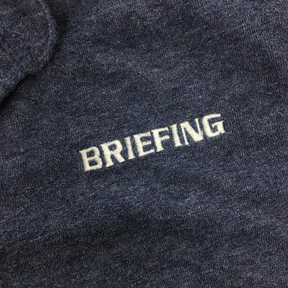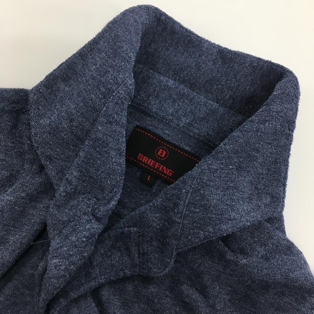 【美品】ブリーフィング 半袖スキッパーシャツ ネイビー パイル地 ロゴ刺しゅう メンズ L ゴルフウェア BRIEFING