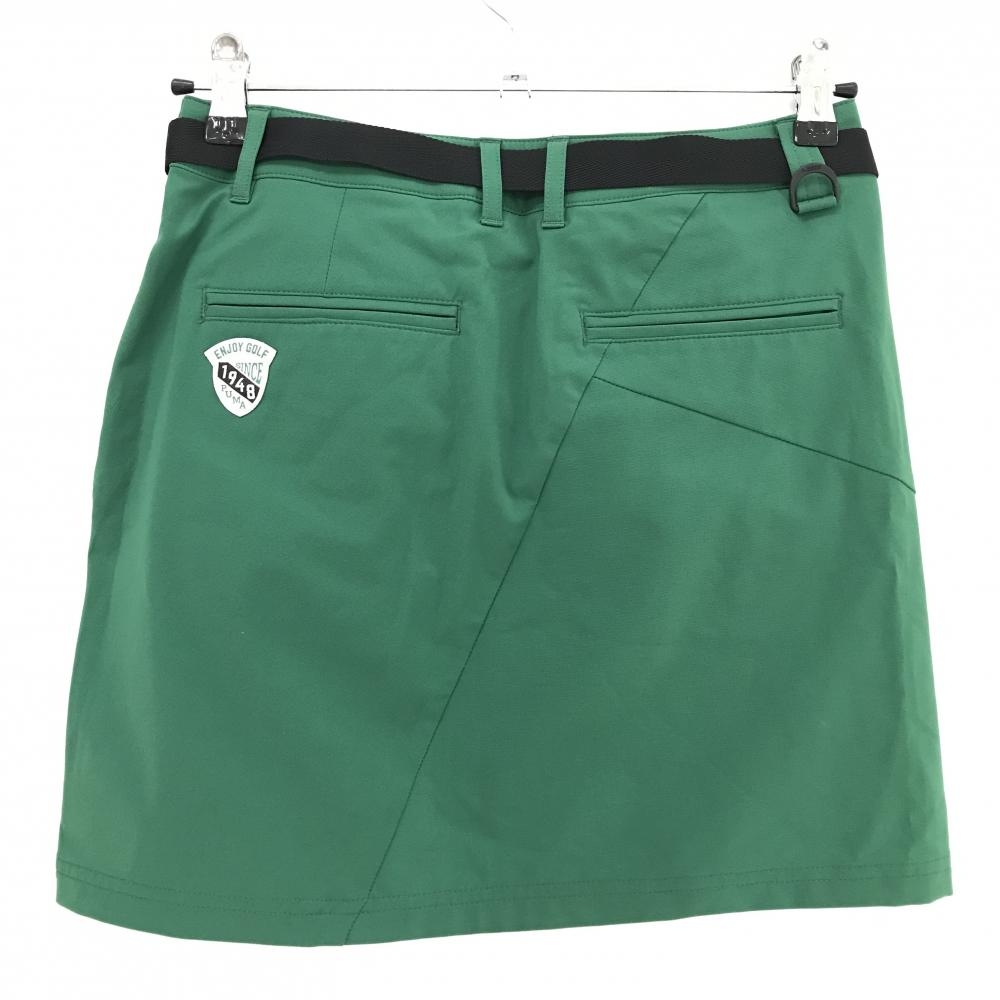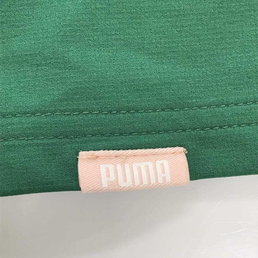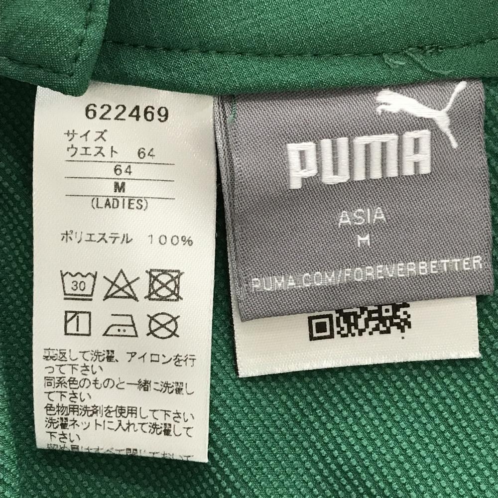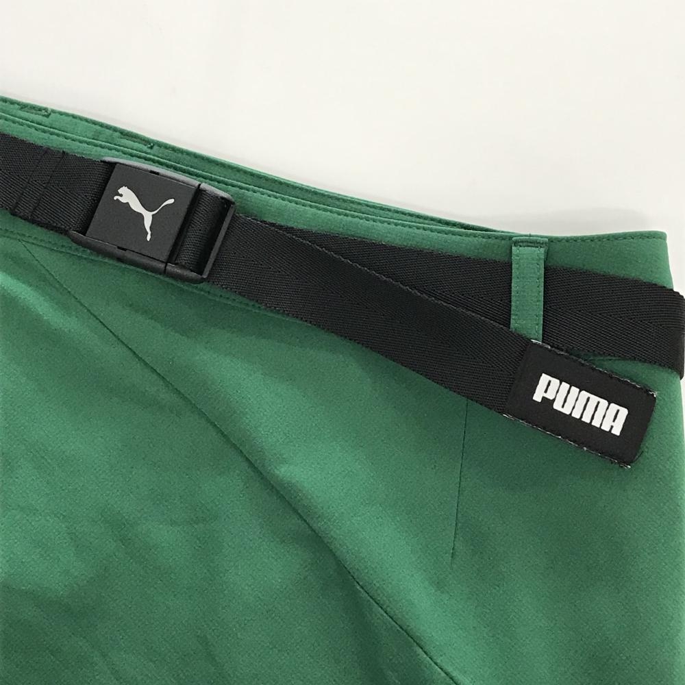 【超美品】プーマ スカート グリーン×黒 裾ロゴ 無地 ベルト付き レディース M ゴルフウェア PUMA