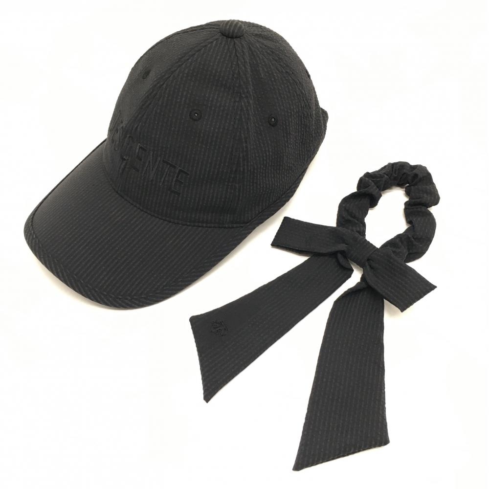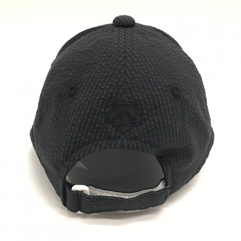 【超美品】デサントゴルフ キャップ 黒 サッカー生地調 リボンシュシュ付き 中田英寿 レディース F(55-57㎝) ゴルフウェア DESCENTE