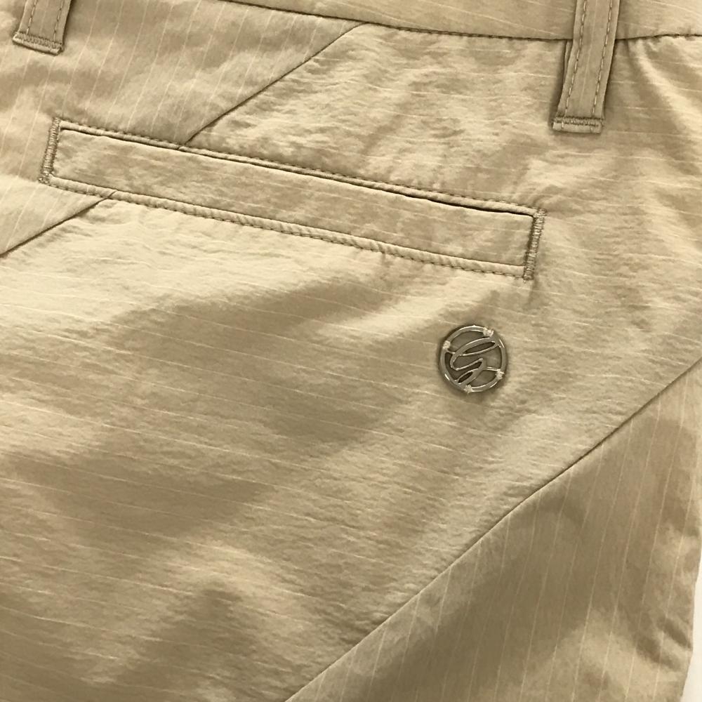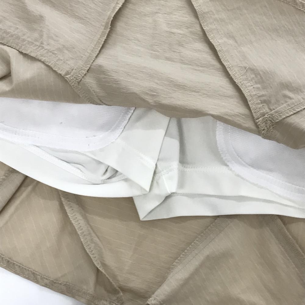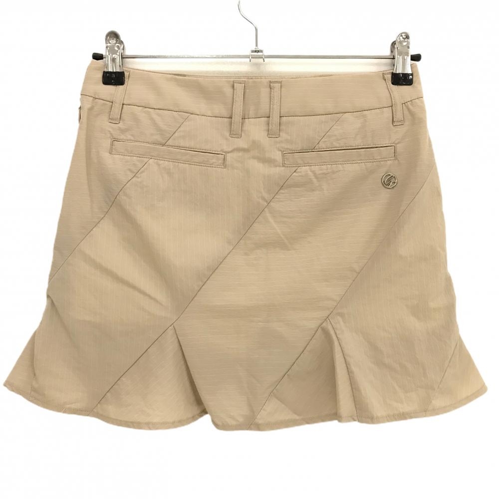 【超美品】デサントゴルフ スカート ベージュ ストライプ 裾フリル 内側インナーパンツ 中田英寿 レディース 61/S ゴルフウェア DESCENTE