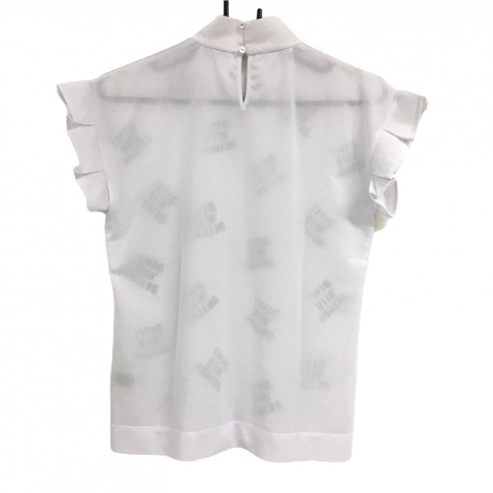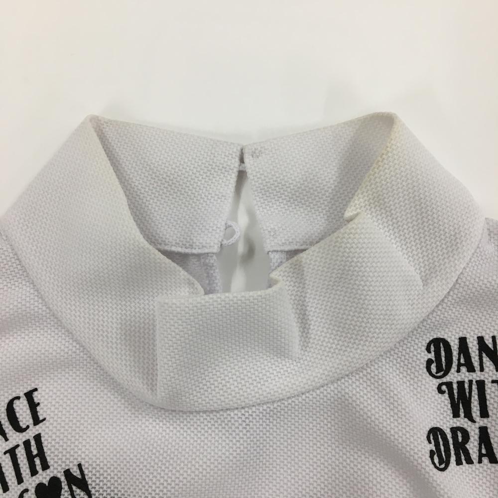 ダンスウィズドラゴン 半袖ハイネックシャツ 白×黒 ロゴ総柄 袖口フリル レディース 2(M) ゴルフウェア Dance With Dragon